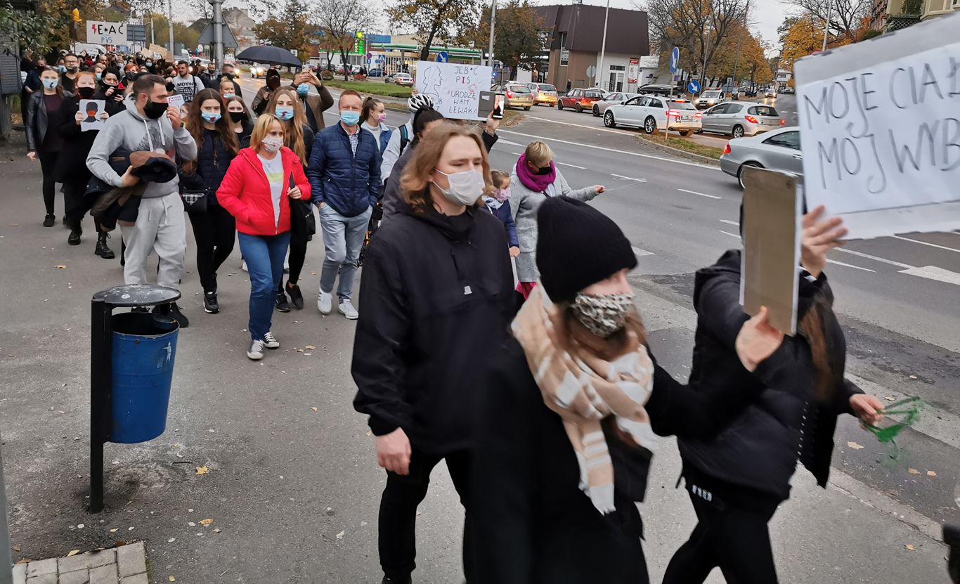 Kilkuset uczestników zgromadził poniedziałkowy protest organizowany przez kobiety. Około 300 osobowa grupa przechodziła po przejściach dla pieszych w poprzek ulicy Głogowskiej. Było to ponad 230 osób. Druga grupa jeździła samochodami od ronda Sybiraków do Bankowego i z powrotem. Aut było około 50. Część kierowców trąbiła. Auta były oznakowane na znak protestu.