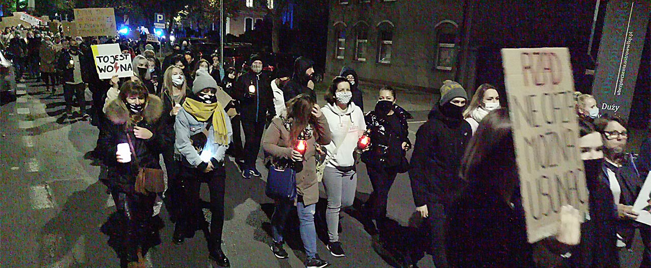Trzeci marsz protestacyjny kobiet na ulicach Ostrowa Wielkopolskiego przeszedł do historii. Uczestników było porównywalnie wielu, tak jak podczas pierwszej akcji, która odbyła się w sobotę. Uczestnicy zebrali się w środę o godzinie 19 w Parku Miejskim skąd w asyście policji ruszyli na spacer. Najpierw Aleją Powstańców Wielkopolskich, dalej ulicą Kaliską, Rynkiem, Raszkowską. Tłum skręcił w lewo na Plac 23 stycznia. Uczestnicy przeszli dalej koło konkatedry, pod którą stała grupa około 100 głównie mężczyzn.