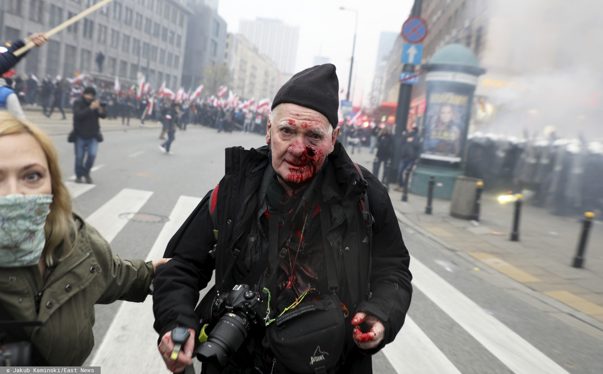 Straż Marszu Niepodległości i inni uczestnicy jednostkowo nielegalnego pochodu starali się powstrzymać chuliganów. To jednak tylko prowokowało do dalszych zadym @RadioZET_NEWS pic.twitter.com/qogHlNowTr