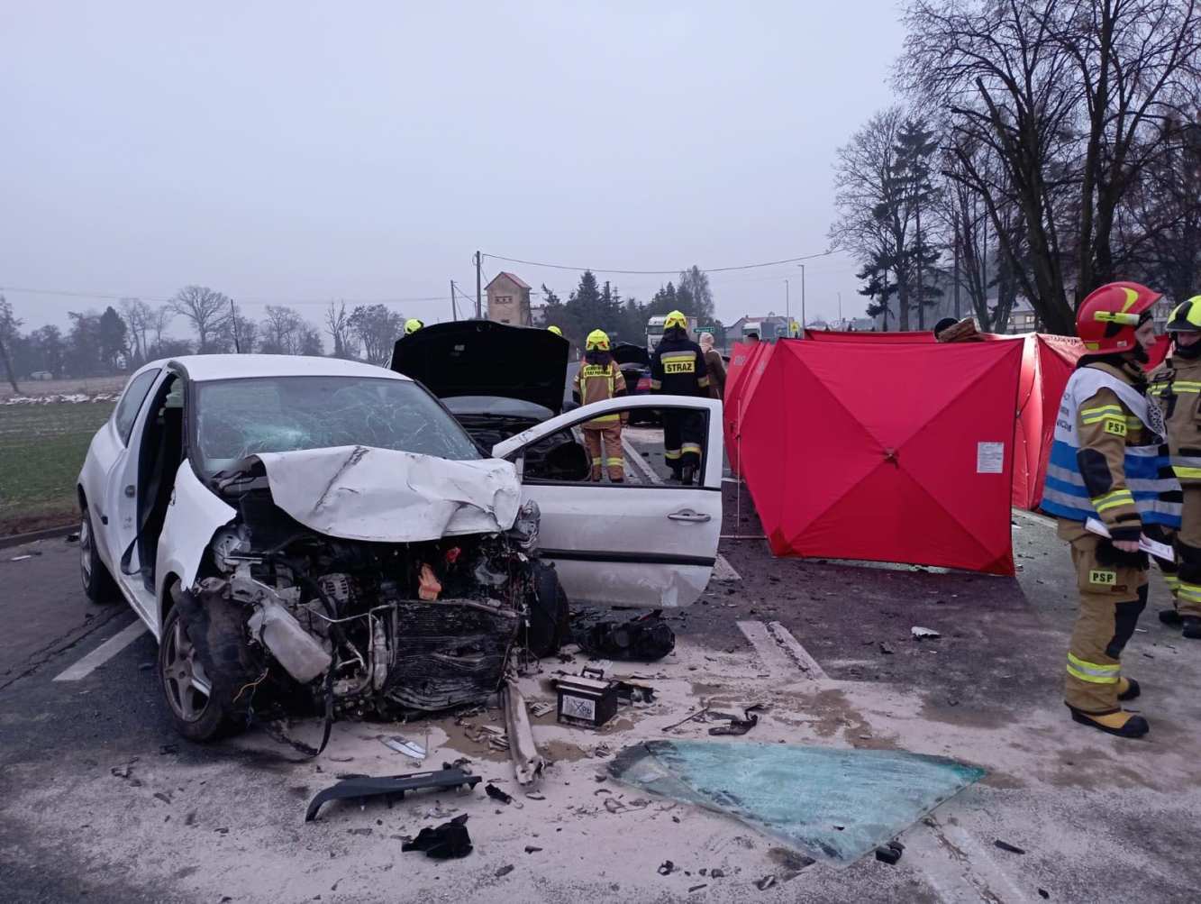 Wypadek miał miejsce po godz. 6.00. – Z wstępnych ustaleń policjantów wynika, że kierujący 21-letni mieszkaniec Wieruszowa, podróżujący audi, z niewiadomych do tej chwili przyczyn, znalazł się na lewym pasie i uderzył czołowo w jadący z naprzeciwka samochód marki renault, którym kierowała 32-letnia mieszkanka gminy Łęka Opatowska, która podróżowała z dwójką dzieci w wieku 12 i 13 lat – relacjonuje sierż. Rafał Stramowski z KPP w Kępnie. – Następnie w samochód renault uderzył volkswagen golf, którym podróżowało dwóch mężczyzn w wieku 37 i 30 lat. W wyniku czołowego zdarzenia 21-latek z Wieruszowa, pomimo natychmiast podjętej reanimacji przez świadków a następnie przybyły Zespół Ratownictwa Medycznego, niestety zmarł na miejscu.