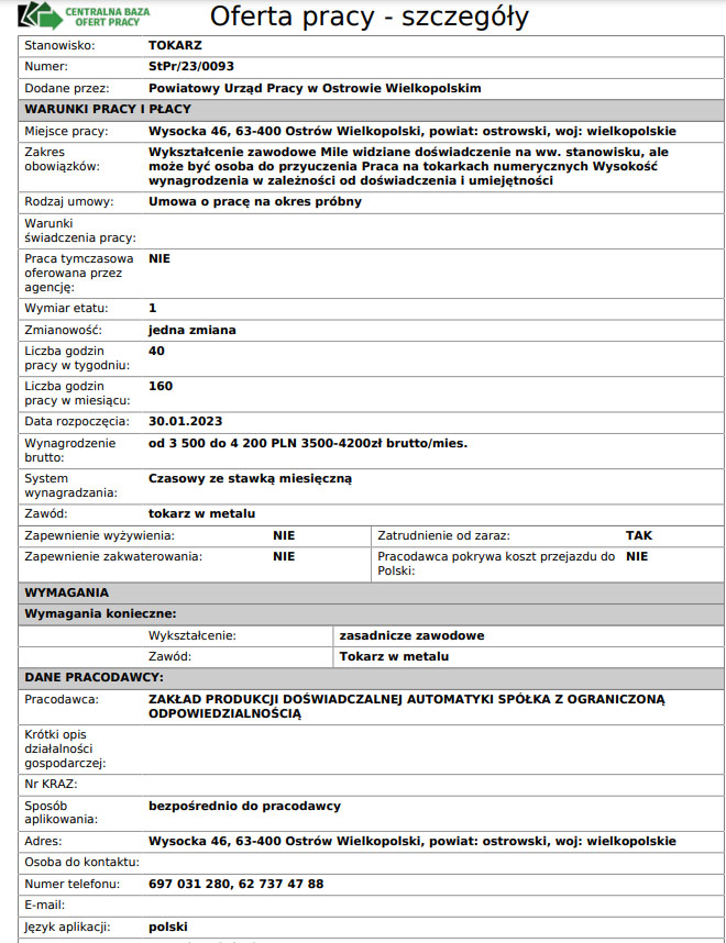 Publikujemy oferty pracy z Urzędu Pracy z terenu powiatu ostrowskiego. Jeśli jesteś osobą bezrobotną lub w twojej firmie szykują się zwolnienia, a może szukasz lepszej pracy, bo aktualna cię denerwuje, zapoznaj się z poniższymi ofertami.