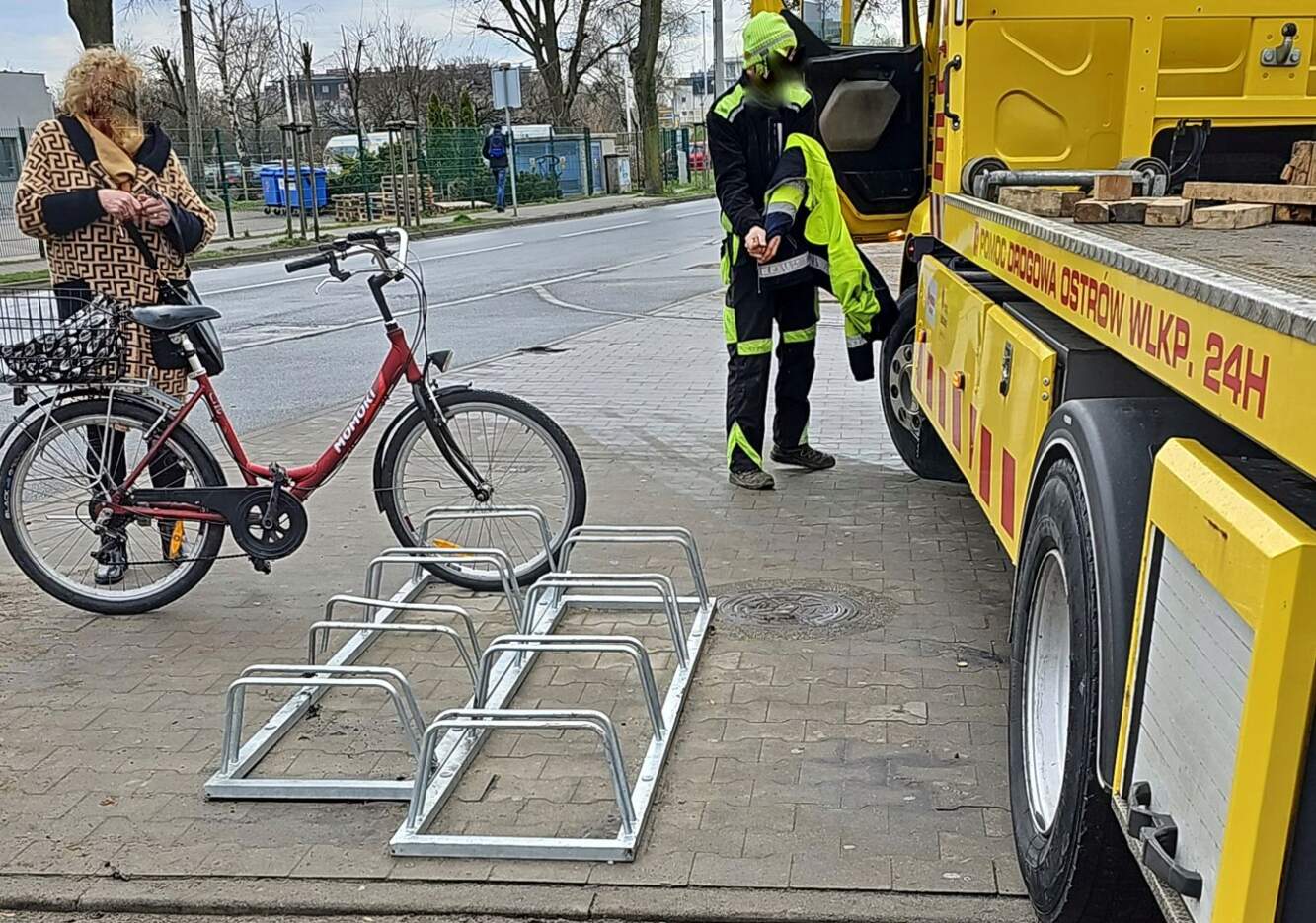 Mowa o stojaku na rowery zlokalizowanym przy markecie przy ulicy Wańkowicza w Ostrowie Wlkp. Pierwotnie był bardziej wysunięty przy wjeździe na parking, a od pewnego czasu przesunięto go o ponad metr bliżej chodnika. Mimo dobrych chęci nadal znajdują się kierowcy, którzy w niego wjeżdżają.