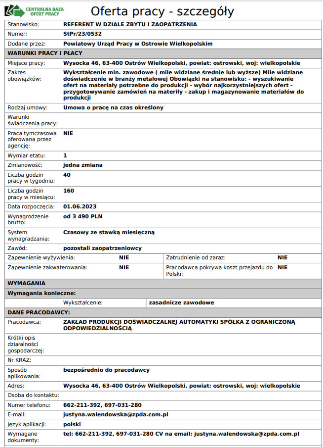 Publikujemy oferty pracy z Urzędu Pracy głównie z terenu powiatu ostrowskiego. Jeśli jesteś osobą bezrobotną lub w twojej firmie szykują się zwolnienia, a może szukasz lepszej pracy, bo aktualna cię denerwuje, zapoznaj się z poniższymi ofertami.