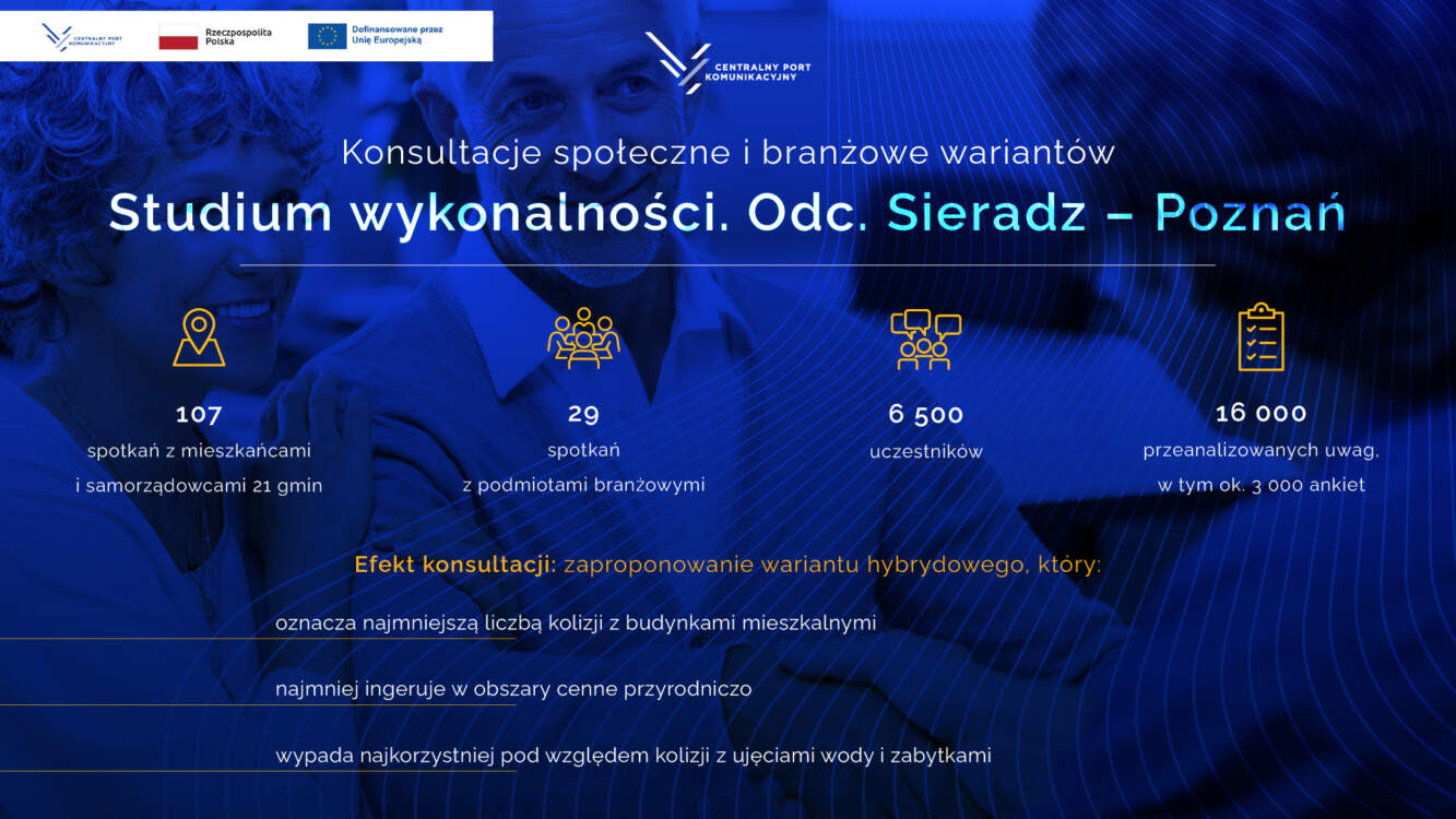 Wariant W9, który ostatecznie wybraliśmy, jest optymalnym rozwiązaniem dla odcinka między Poznaniem a Sieradzem i powstał w wyniku konsultacji z mieszkańcami i samorządowcami. Oznacza najmniejszą liczbą kolizji z budynkami mieszkalnymi, najmniej ingeruje w obszary cenne przyrodniczo i wypada najkorzystniej pod względem kolizji z ujęciami wody i zabytkami – mówi Radosław Kantak, Członek Zarządu CPK ds. Inwestycji Kolejowych.