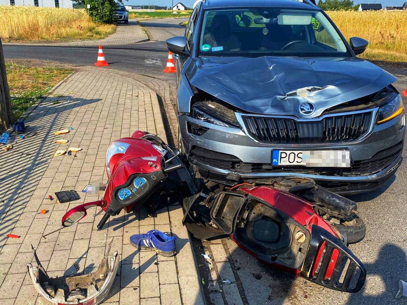 Ze wstępnych ustaleń wynika, że motorowerzysta nie ustąpił pierwszeństwa przejazdu skodzie. Osobówka uderzyła przodem w motorower.