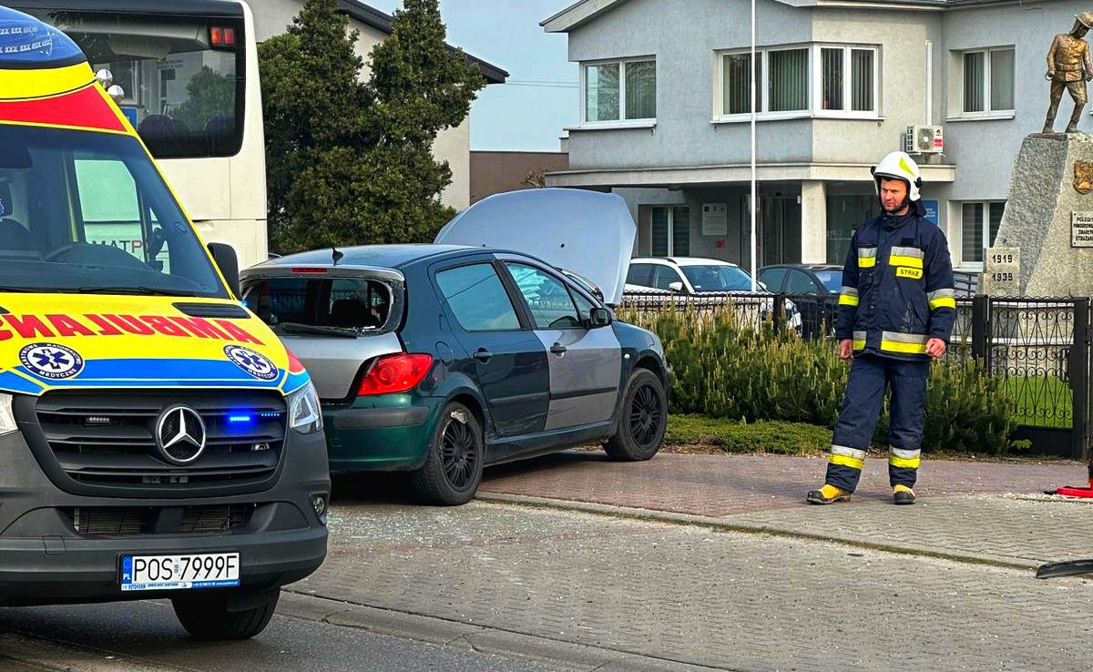 Kierowca passata uderzył w tylny bok peugeota, który po uderzeniu wpadł w poślizg i uderzył w stojący na przystanku autobus.