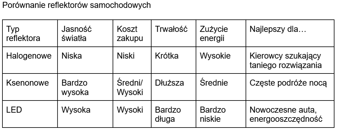 Reflektory halogenowe – mają niski koszt zakupu i łatwą wymianę, ale trzeba je częściej wymieniać niż LED czy ksenony. - Jakie reflektory sprawdzą się najlepiej do jazdy nocą?