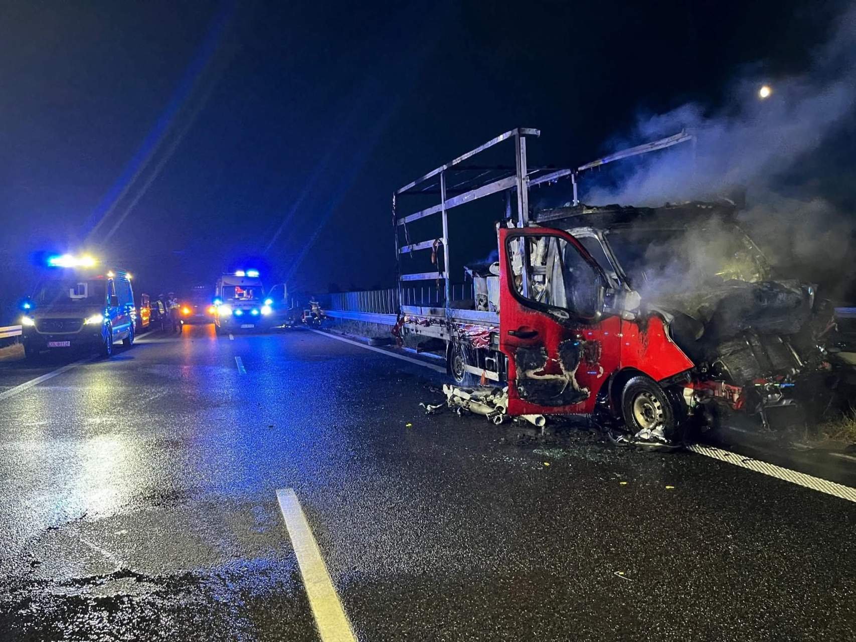 Na skutek zderzenia dostawczak stanął w płomieniach, które sięgały wysokości kilku metrów. Na miejsce błyskawicznie zadysponowano służby ratunkowe – policję, straż pożarną, zespoły karetek pogotowia oraz śmigłowiec Lotniczego Pogotowia Ratunkowego. Strażacy ugasili pożar i zabezpieczyli teren zdarzenia.