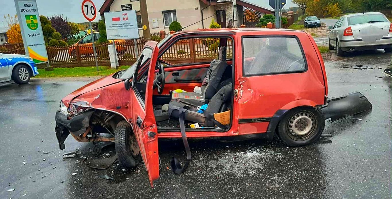 Dzisiaj, około godziny 7:55 w miejscowości Doruchów (powiat ostrzeszowski) doszło do poważnego zdarzenia drogowego z udziałem trzech samochodów osobowych.
