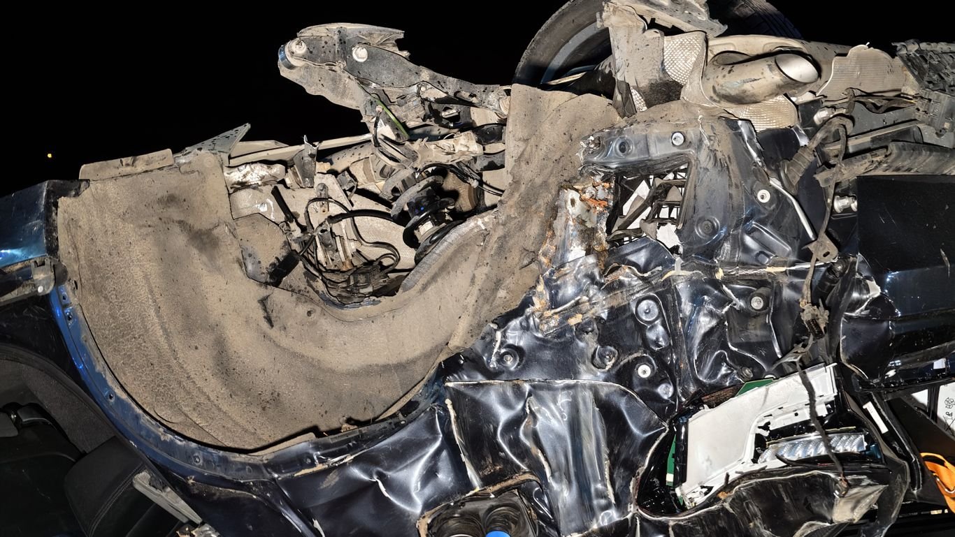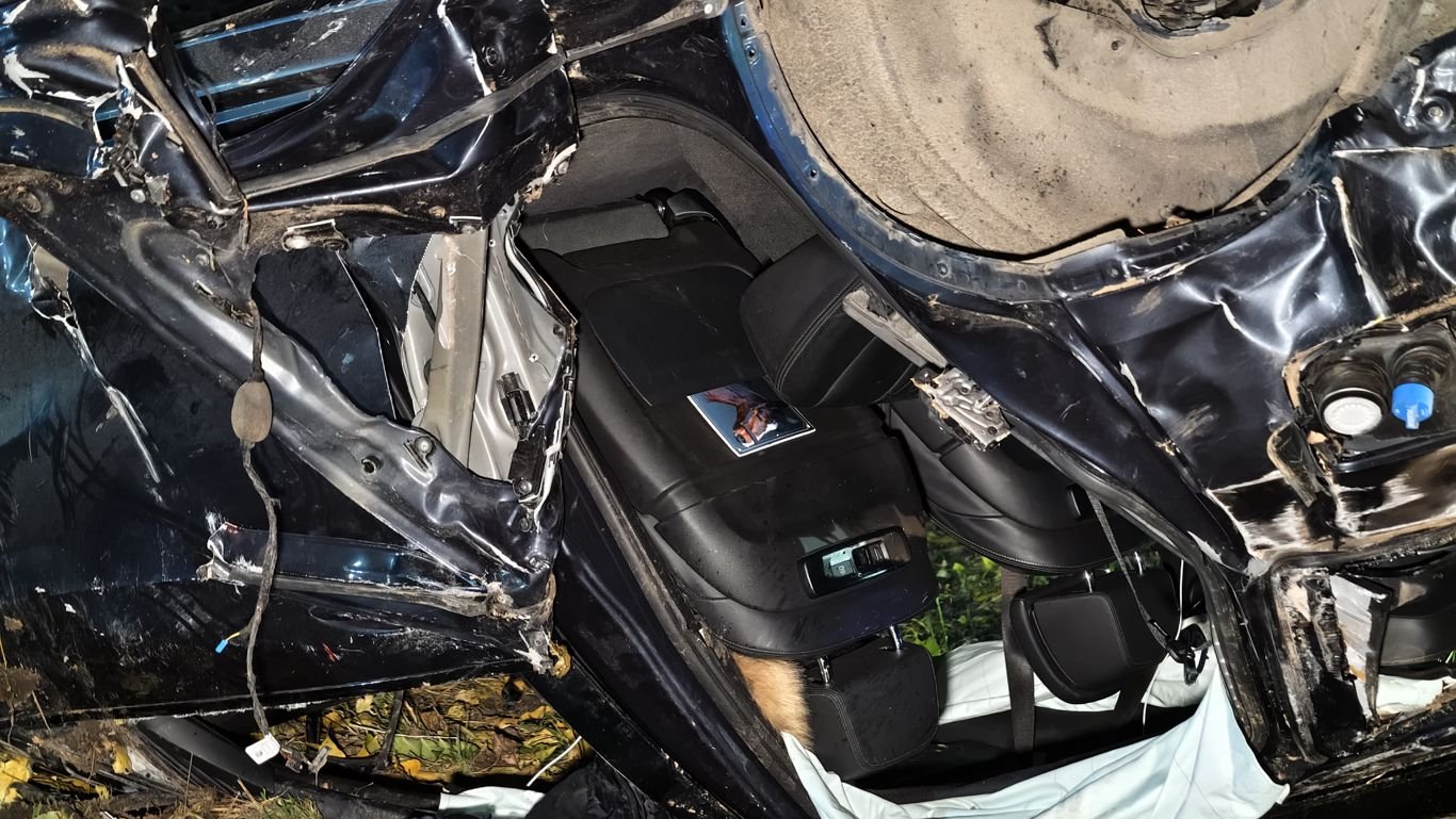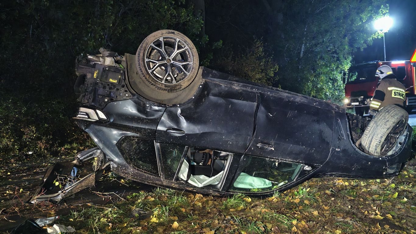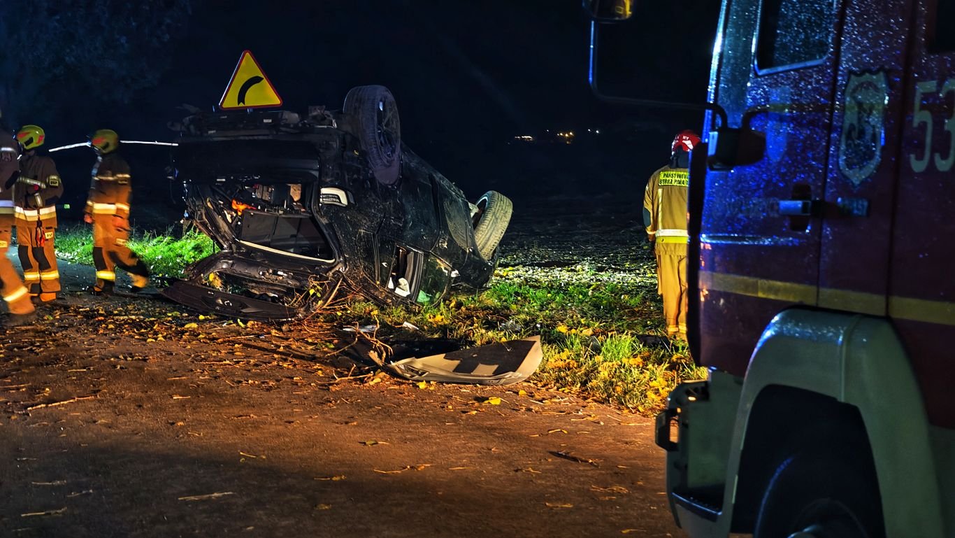 Według wstępnych ustaleń, auto nagle zjechało na lewą stronę, po czym wpadło na pole i przekoziołkowało. Tylny narożnik pojazdu uderzył w grube drzewo, co całkowicie zniszczyło karoserię potężnego SUV-a. Samochód ostatecznie zatrzymał się na dachu.