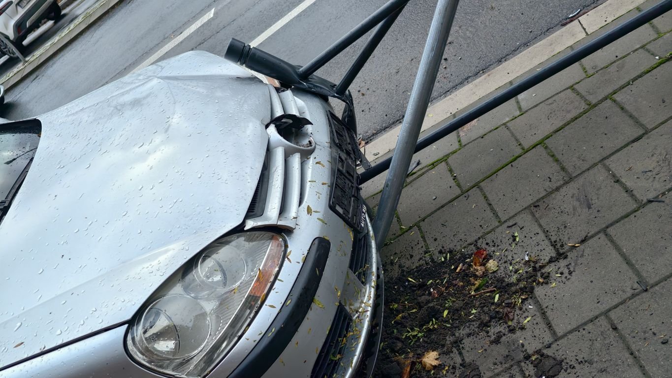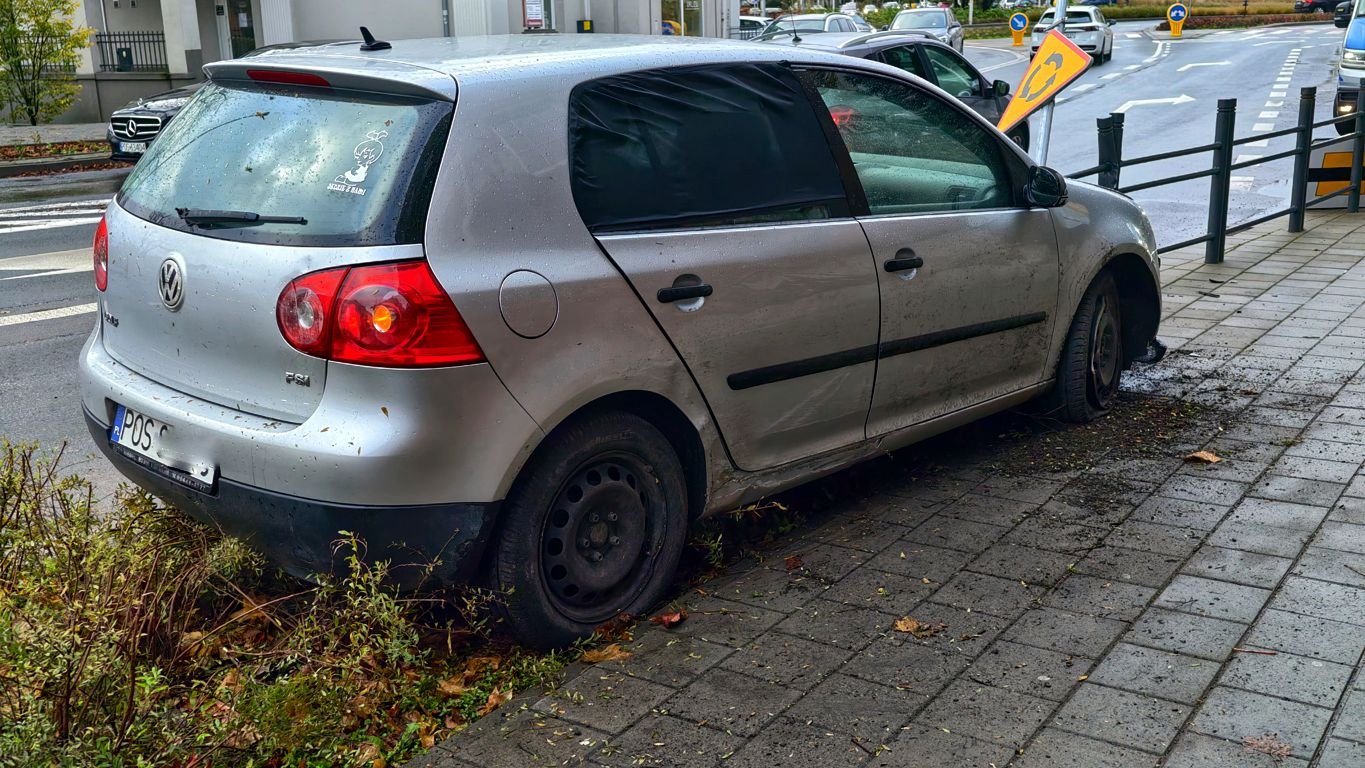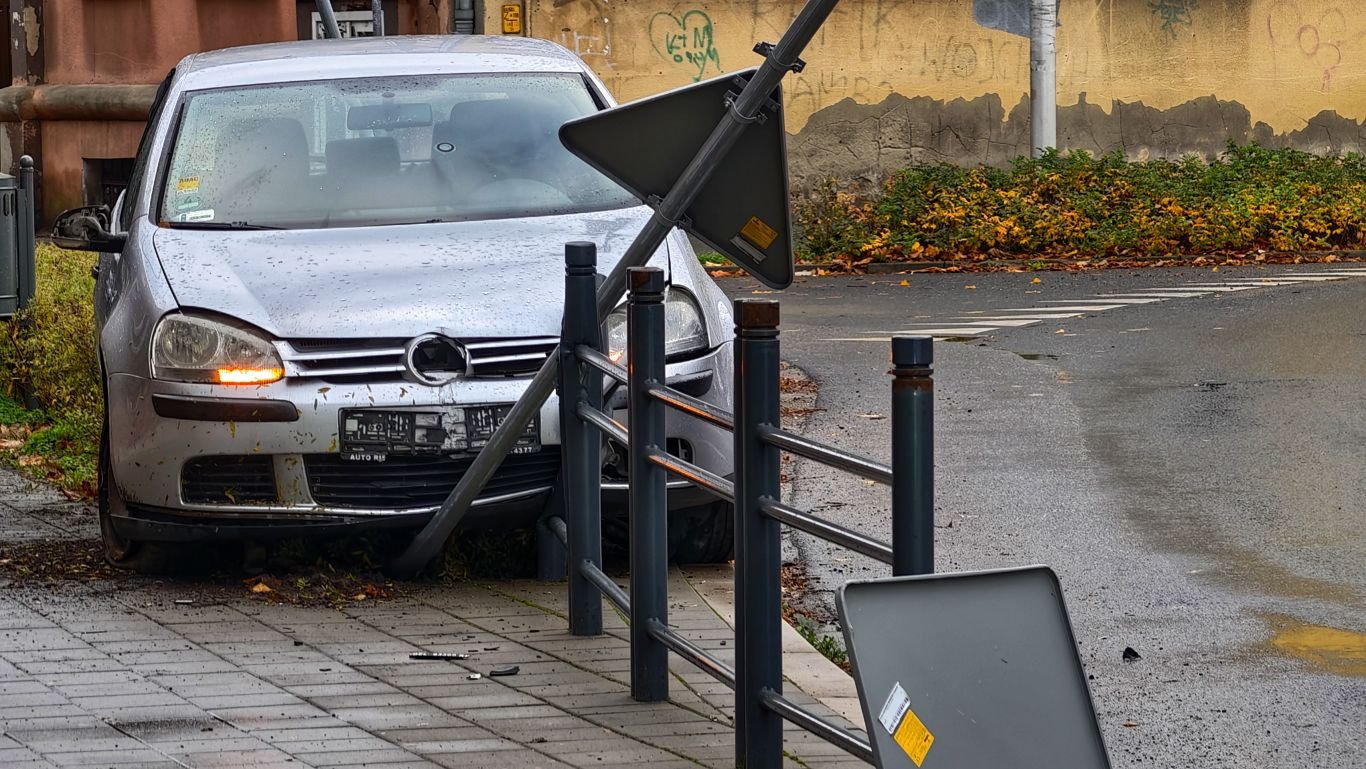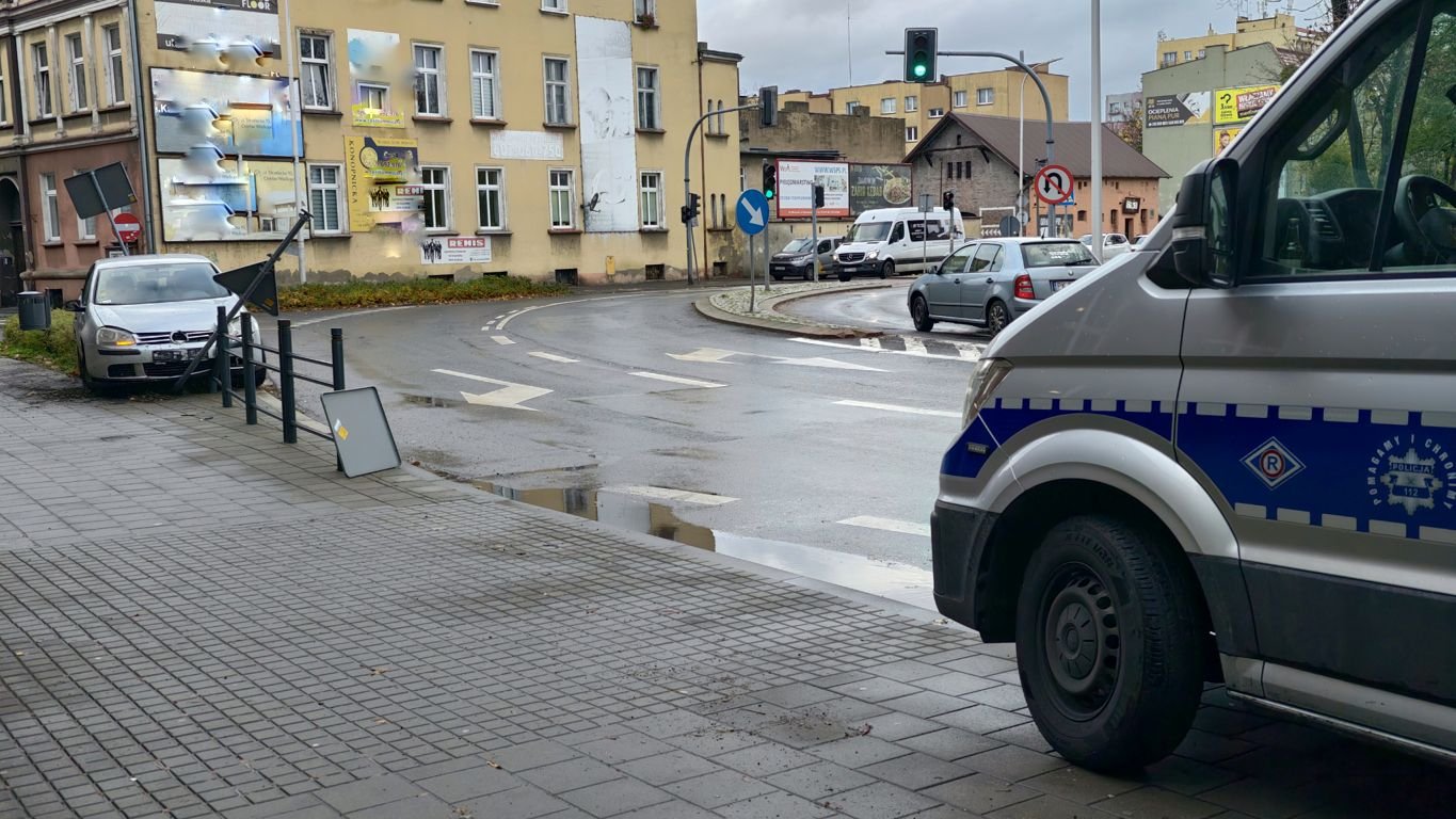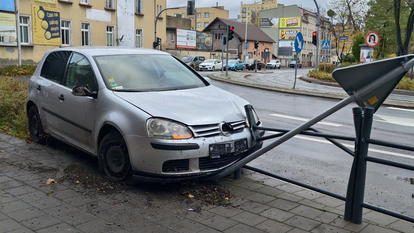 We wtorkowy poranek na ulicy Wrocławskiej, w pobliżu II Liceum Ogólnokształcącego w Ostrowie Wielkopolskim, doszło do zdarzenia drogowego. Kierująca samochodem marki Volkswagen, poruszając się po łuku drogi, na mokrej nawierzchni straciła panowanie nad pojazdem. Auto uderzyło prawym kołem w krawężnik, a następnie uszkodziło pionowy znak drogowy oraz element barierki ochronnej.