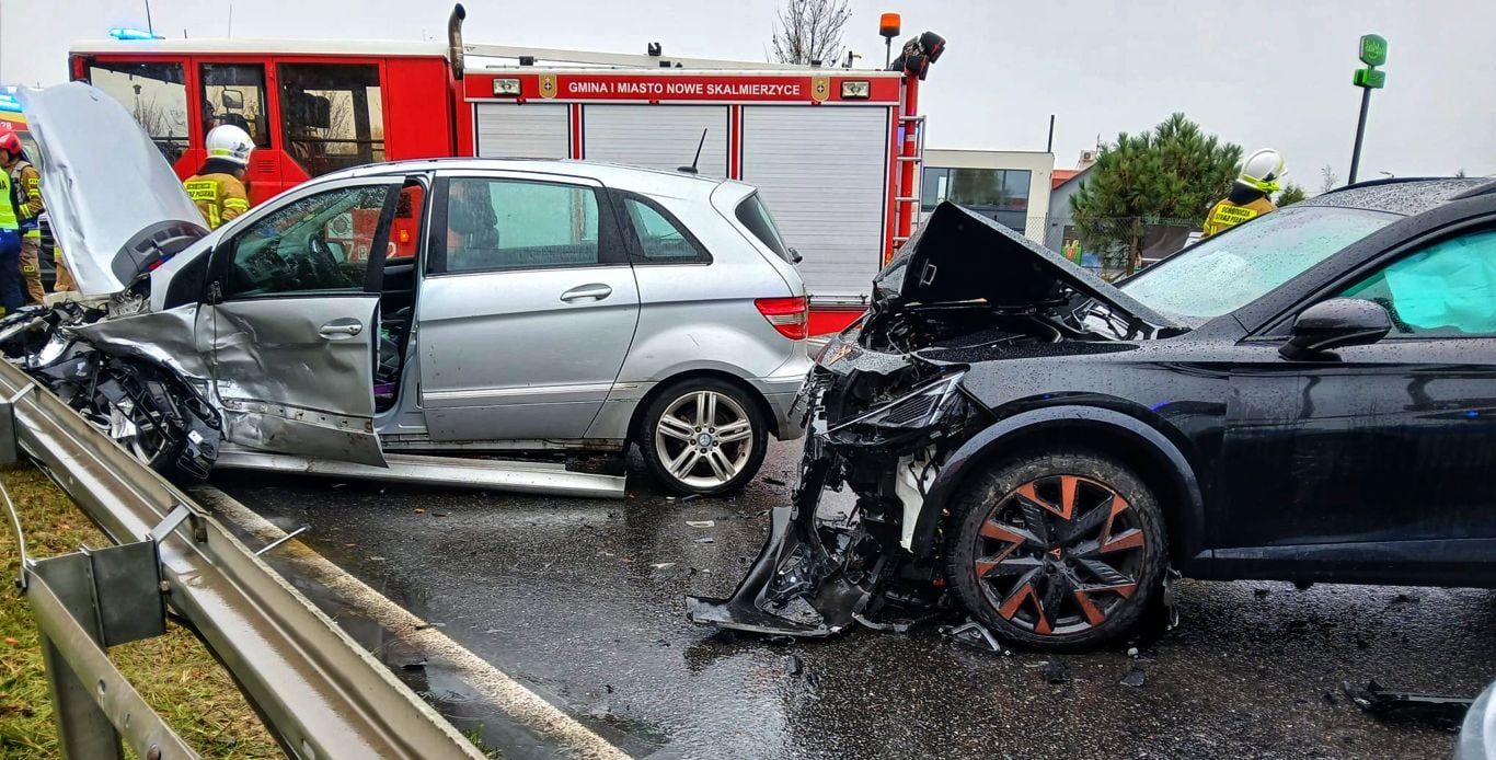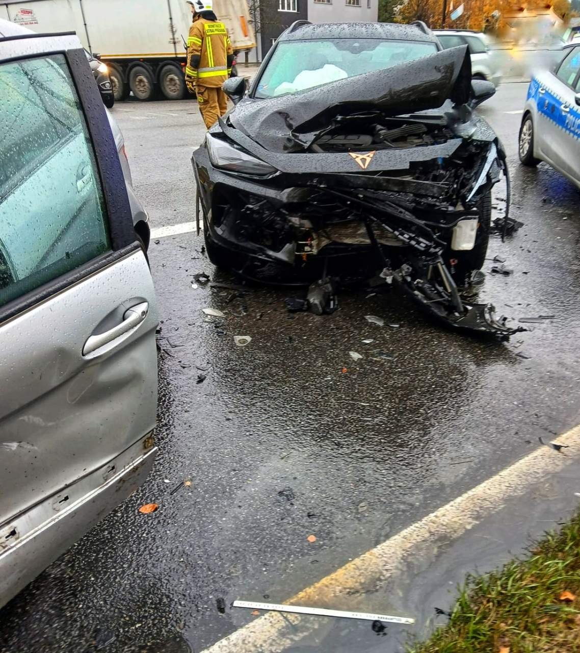 Około południa zderzyły się tam dwa samochody osobowe – Mercedes oraz Cupra Leon. Na miejsce natychmiast zadysponowano służby ratunkowe, w tym policję, straż pożarną i pogotowie.