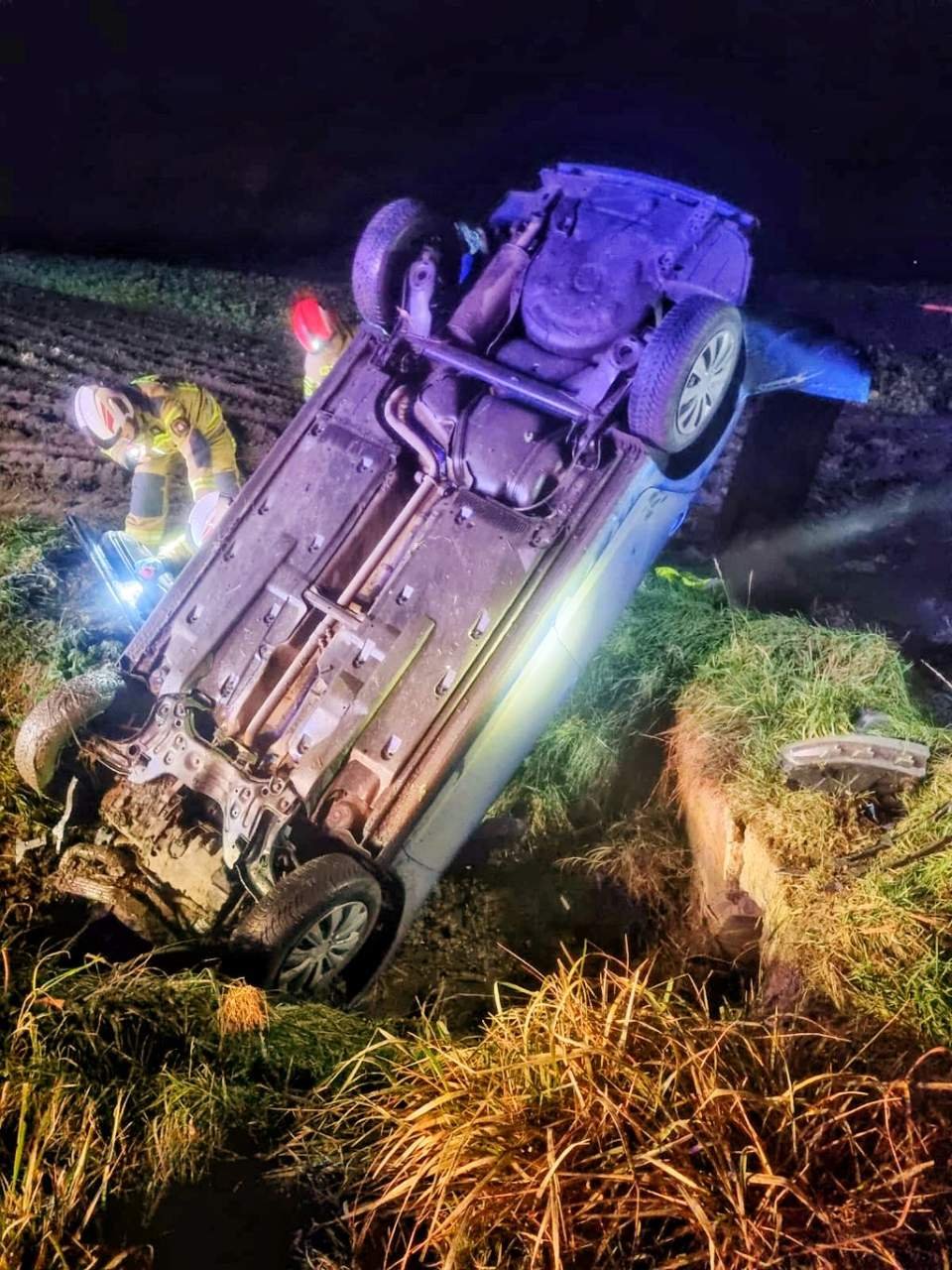 Około godziny 20.30 doszło do wypadku na końcu powiatu ostrowskiego. W miejscowości Biskupice doszło do dachowania samochodu osobowego Skoda Rapid.