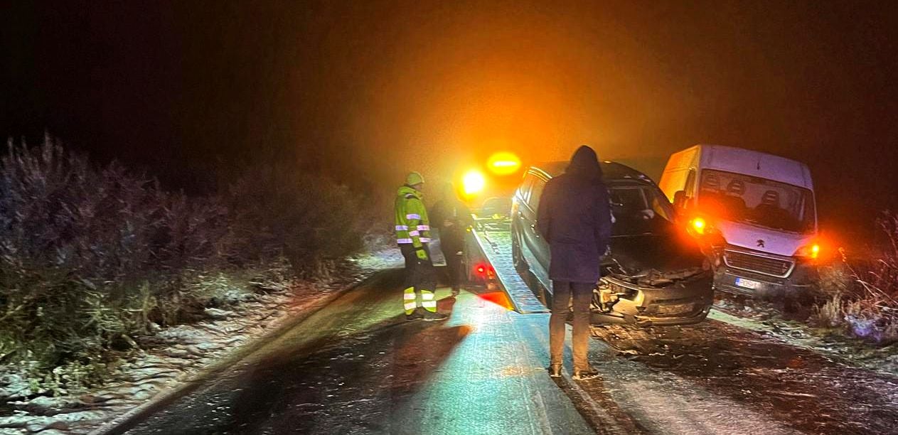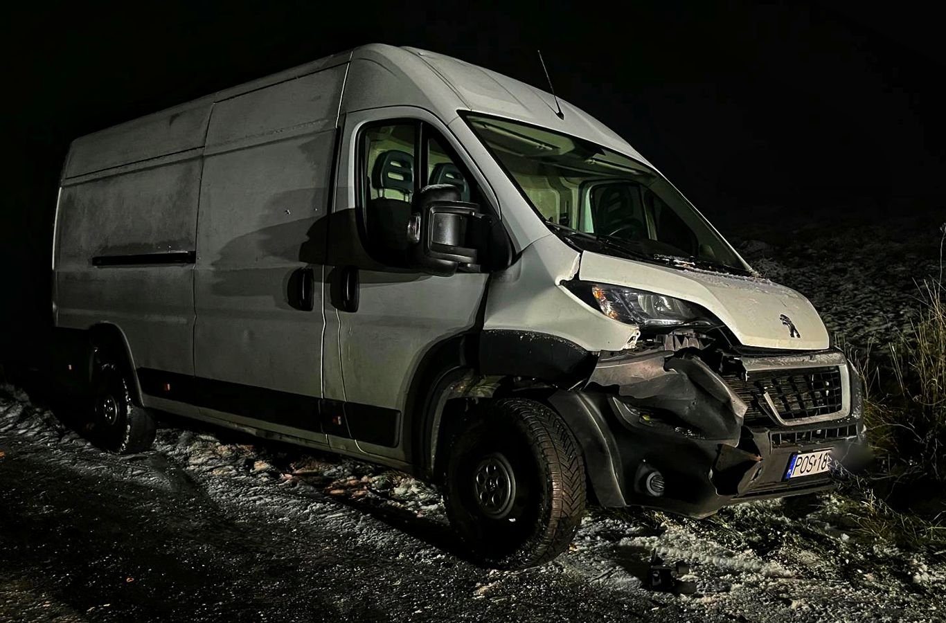 W tym czasie drogą przejeżdżał kierowca samochodu osobowego marki Citroën. Jak wynika z ustaleń służb, warunki na jezdni były wyjątkowo trudne – opady śniegu sprawiły, że nawierzchnia stała się bardzo śliska. Mimo podjętej próby hamowania kierowca Citroëna nie zdołał zatrzymać auta. Pojazd wpadł w poślizg i uderzył w zaparkowanego busa.