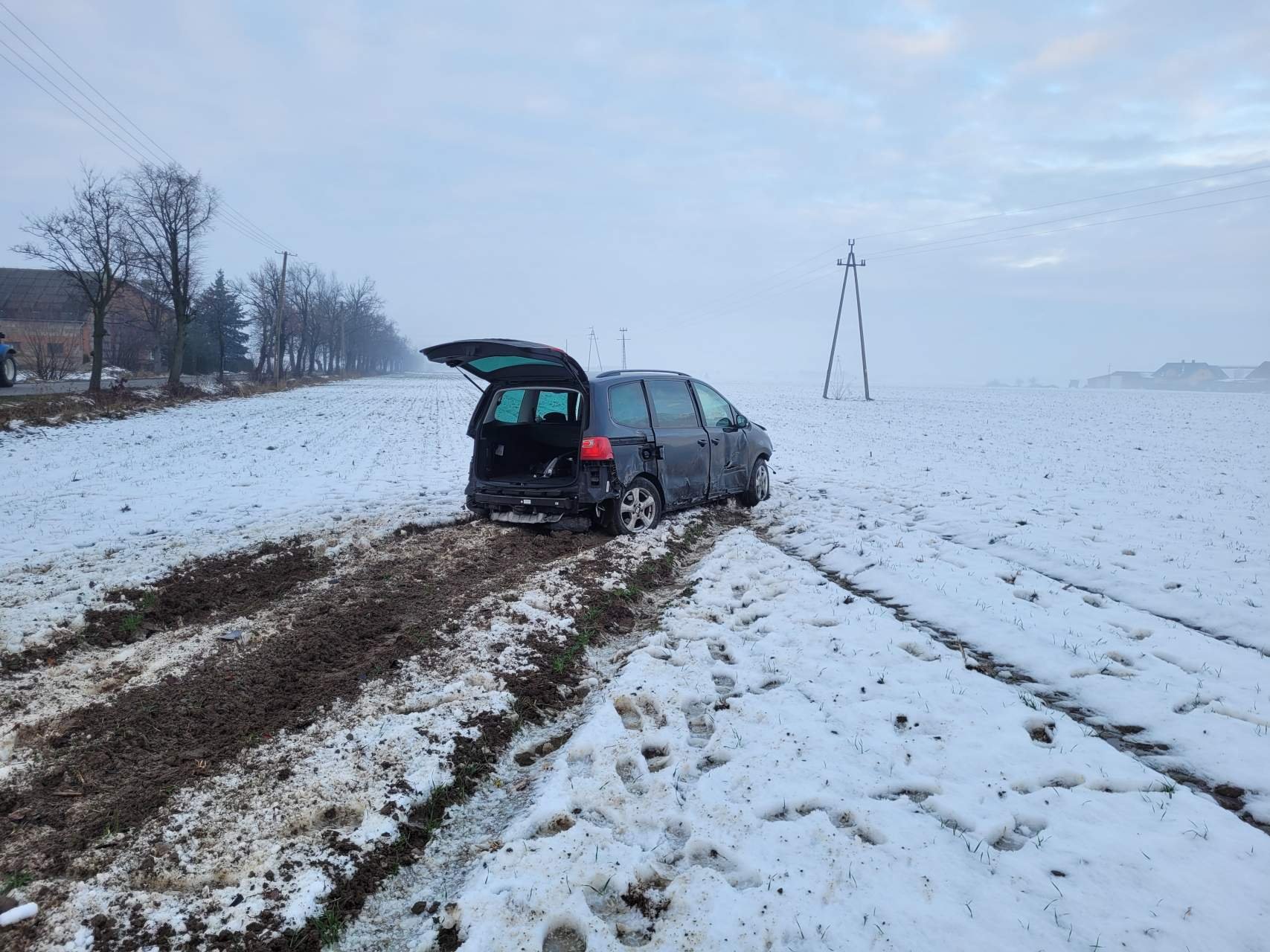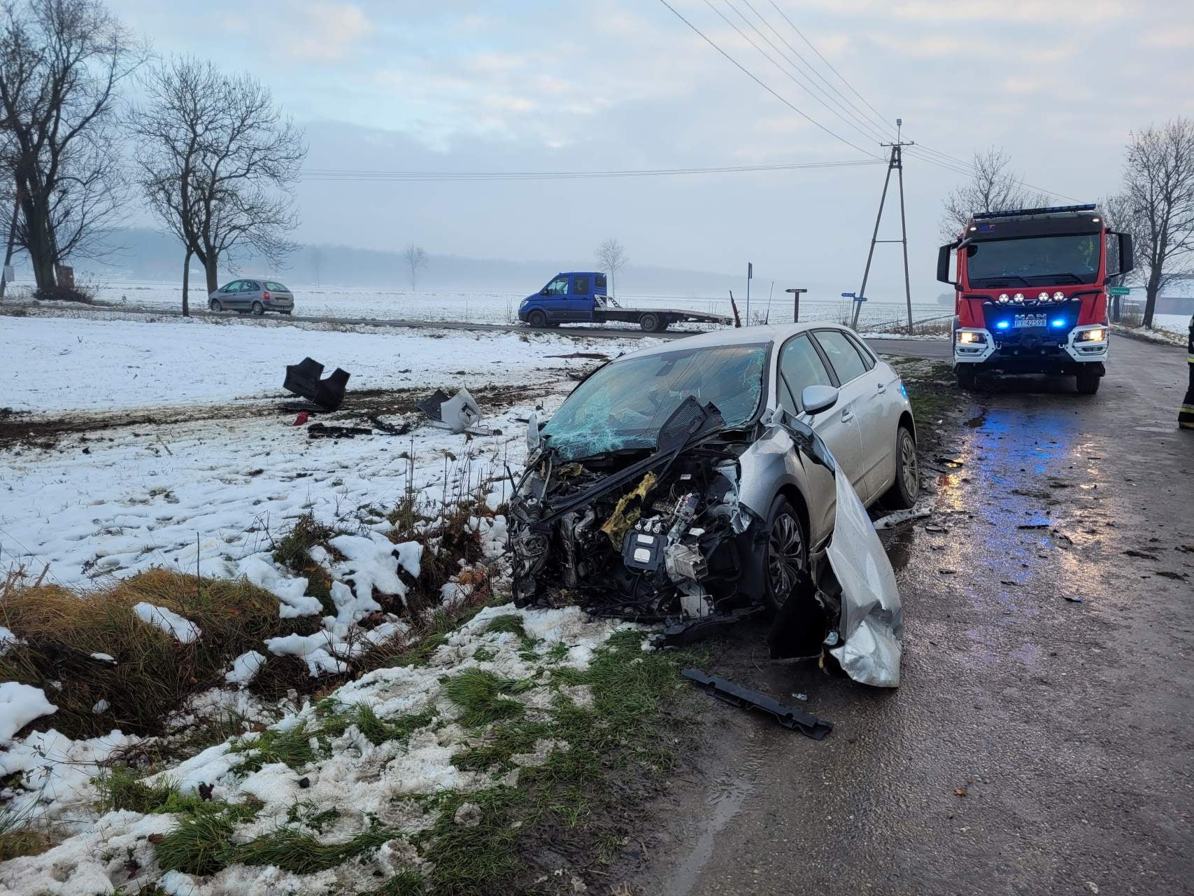 Siła uderzenia była na tyle duża, że Seat Alhambra wypadł z jezdni i zatrzymał się w przydrożnym polu, natomiast Citroen C4 z uszkodzoną przednią częścią pozostał na jezdni. W obu pojazdach podróżowały łącznie dwie osoby. Jedna z nich opuściła auto o własnych siłach jeszcze przed przybyciem strażaków. W wyniku kolizji uszkodzona została również znajdująca się przy drodze kapliczka.