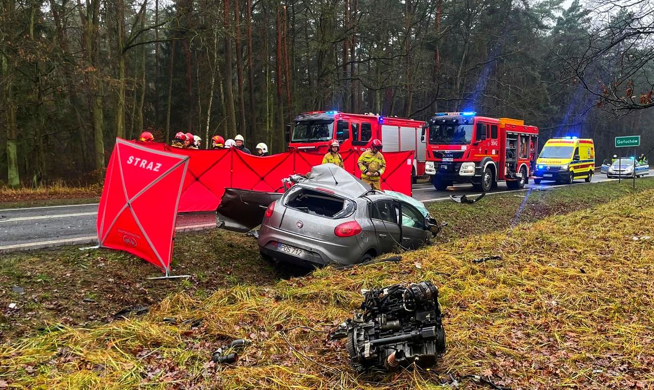 Siła uderzenia była bardzo duża. W wyniku odniesionych obrażeń wypadku nie przeżył mężczyzna. Samochód jest na tablicach rejestracyjnych POS. Trwa ustalanie okoliczności.