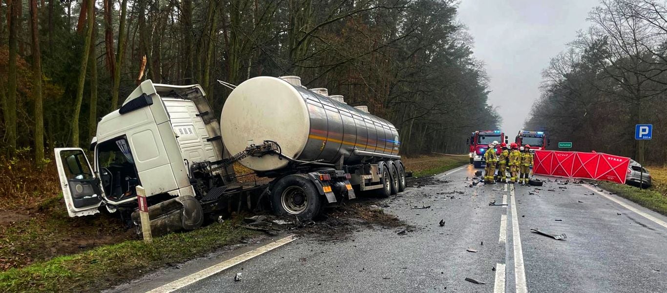 W piątkowe przedpołudnie doszło do poważnego wypadku. Na drodze krajowej nr 12, na wjeździe do miejscowości Gołuchów zderzyła się cysterna oraz osobowy Fiat.