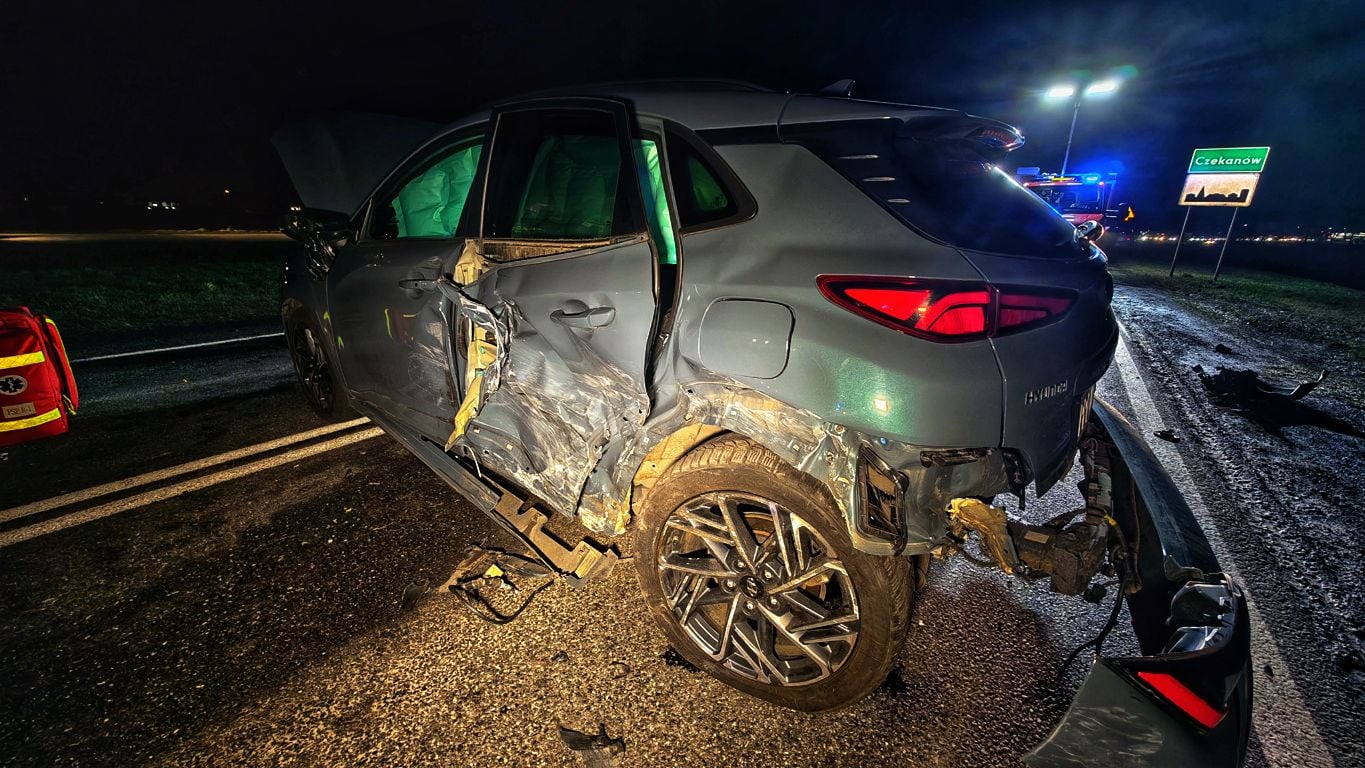 Kierowca Hyundai Kona nie zachował należytej ostrożności i odległości. Kiedy zorientował się, że samochody jadące przed nim w stronę Czekanowa zatrzymują się, ten zaczął gwałtownie hamować. W efekcie uderzył w tył opla insignia, a następnie rykoszetem w mercedesa jadącego z przeciwka.