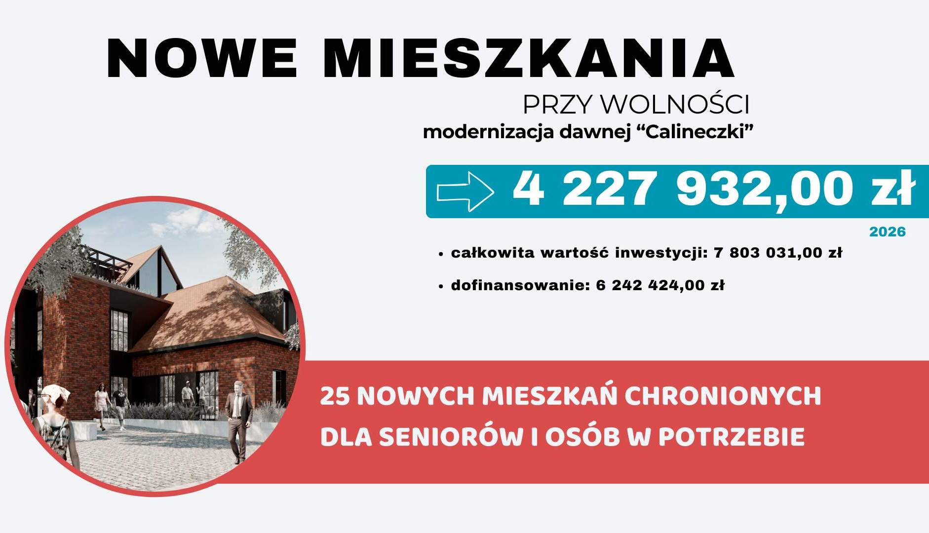 Istotną część projektu budżetu stanowią inwestycje w edukację i opiekę społeczną. Rozbudowa szkół, modernizacja żłobka oraz utworzenie mieszkań chronionych dla seniorów i osób wymagających wsparcia mają poprawić dostęp do usług społecznych i odciążyć rodziny.