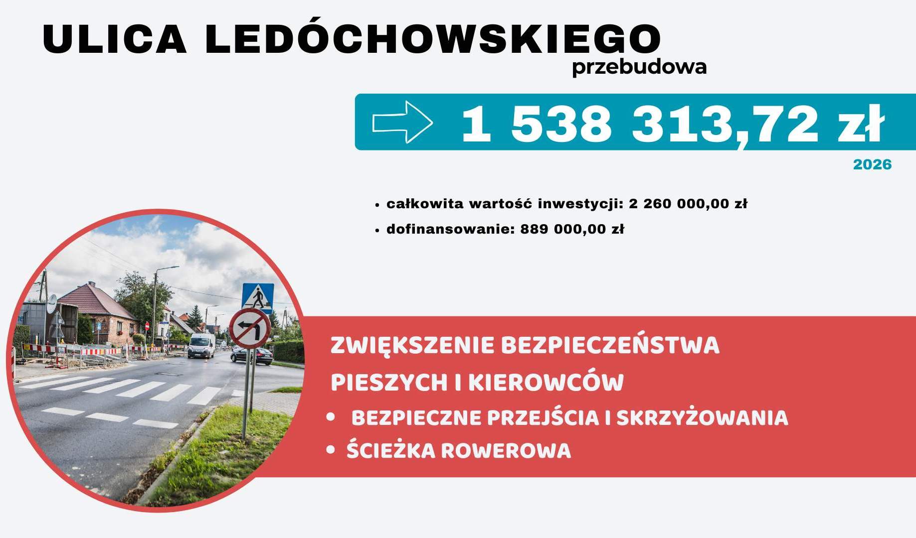 Projekt budżetu kładzie duży nacisk na bezpieczeństwo. Rozbudowa kolektora deszczowego ma ograniczyć ryzyko lokalnych podtopień, natomiast program modernizacji dróg osiedlowych poprawić bezpieczeństwo pieszych i kierowców. W planach jest budowa i przebudowa ponad 3,5 kilometra ulic oraz ponad 2 kilometrów chodników i ścieżek rowerowych.