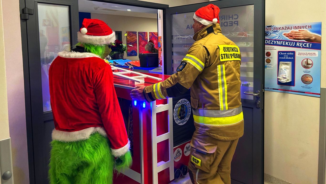 W przedświąteczny wtorek, 23 grudnia, korytarze Zespołu Zakładów Opieki Zdrowotnej w Ostrowie Wielkopolskim wypełniły się czerwienią mikołajkowych czapek. Strażacy zamienili węże gaśnicze na worki pełne prezentów i wcielili się w rolę pomocników Świętego Mikołaja, by choć na chwilę wywołać uśmiech na twarzach małych pacjentów oddziału dziecięcego.