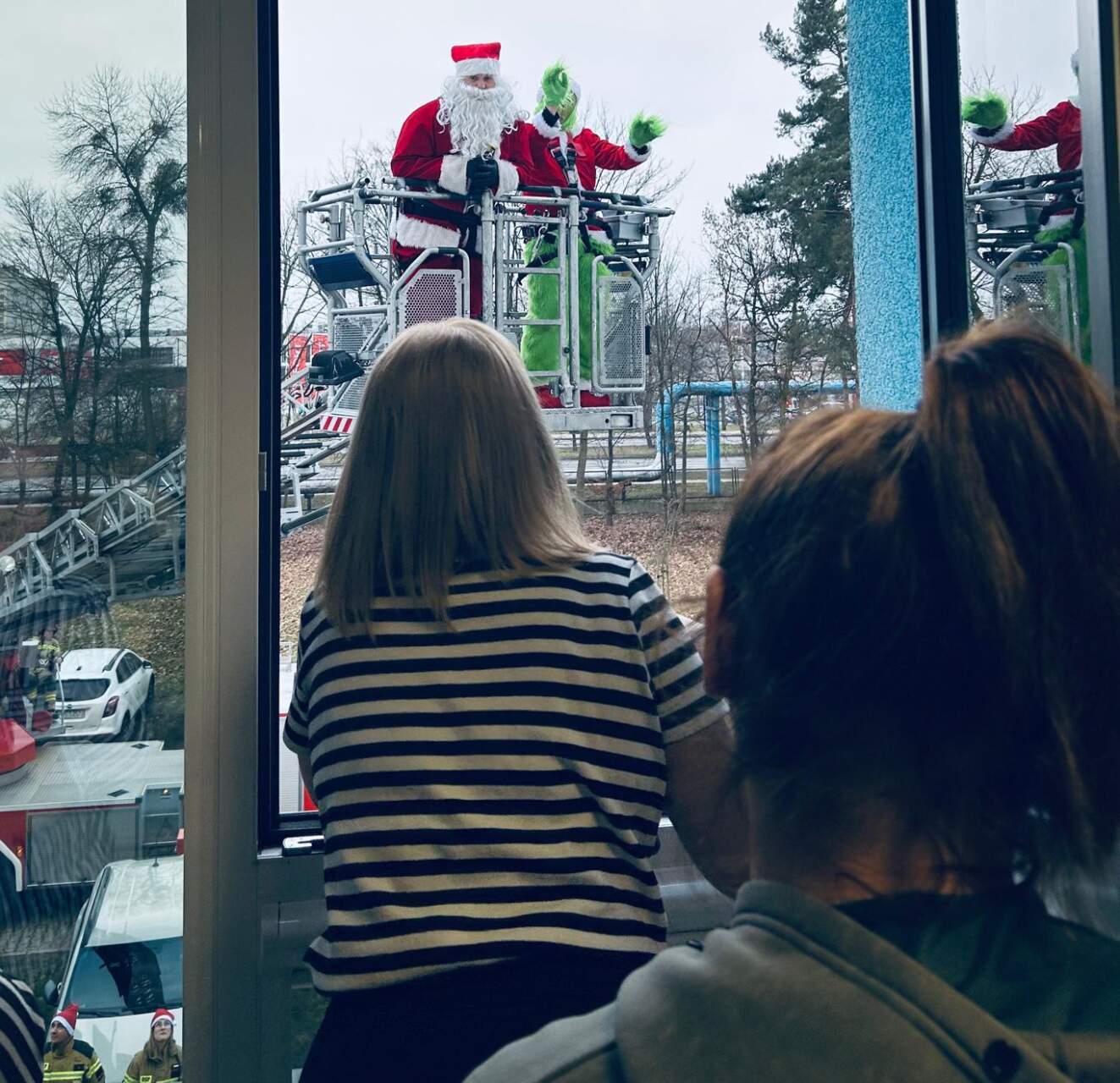 Niezwykli goście dosłownie zapukali do szpitalnych okien, wywołując ogromne emocje i prawdziwe zaskoczenie – także na wyższych piętrach oddziałów, do których dotarli dzięki podnośnikowi udostępnionemu przez strażaków z KP PSP. Dzieci otrzymały świąteczne paczki oraz szpitalne pierniczki, a pozostali napotkani pacjenci – słodkie cukierki. Uśmiechy, śmiech i błysk w oczach najmłodszych były najlepszym dowodem na to, jak bardzo potrzebne i wyjątkowe były te chwile.