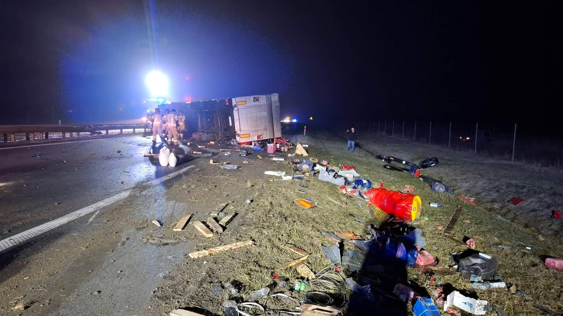 Jak się okazało, to nie było jedyne zdarzenie tej nocy na obwodnicy. Na drugim pasie, w kierunku Jarocina, doszło do kolizji z udziałem kilku pojazdów. Strażacy z Jarocina informowali, że na 6. kilometrze obwodnicy trzy samochody osobowe uderzyły w bariery energochłonne.