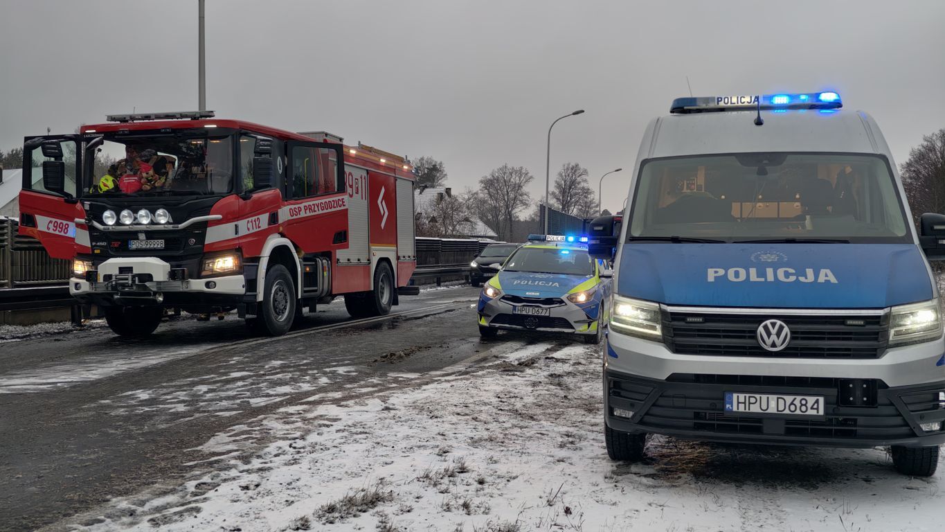 Na miejscu pracują służby ratunkowe oraz policja, która wyjaśnia dokładne okoliczności zdarzenia. Droga krajowa nr 11/25 w rejonie ronda Strugi pozostaje zablokowana, a kierowcy muszą liczyć się z utrudnieniami i wybierać trasy objazdowe.
