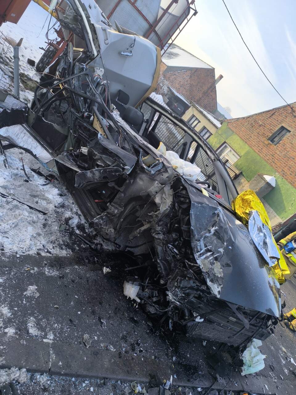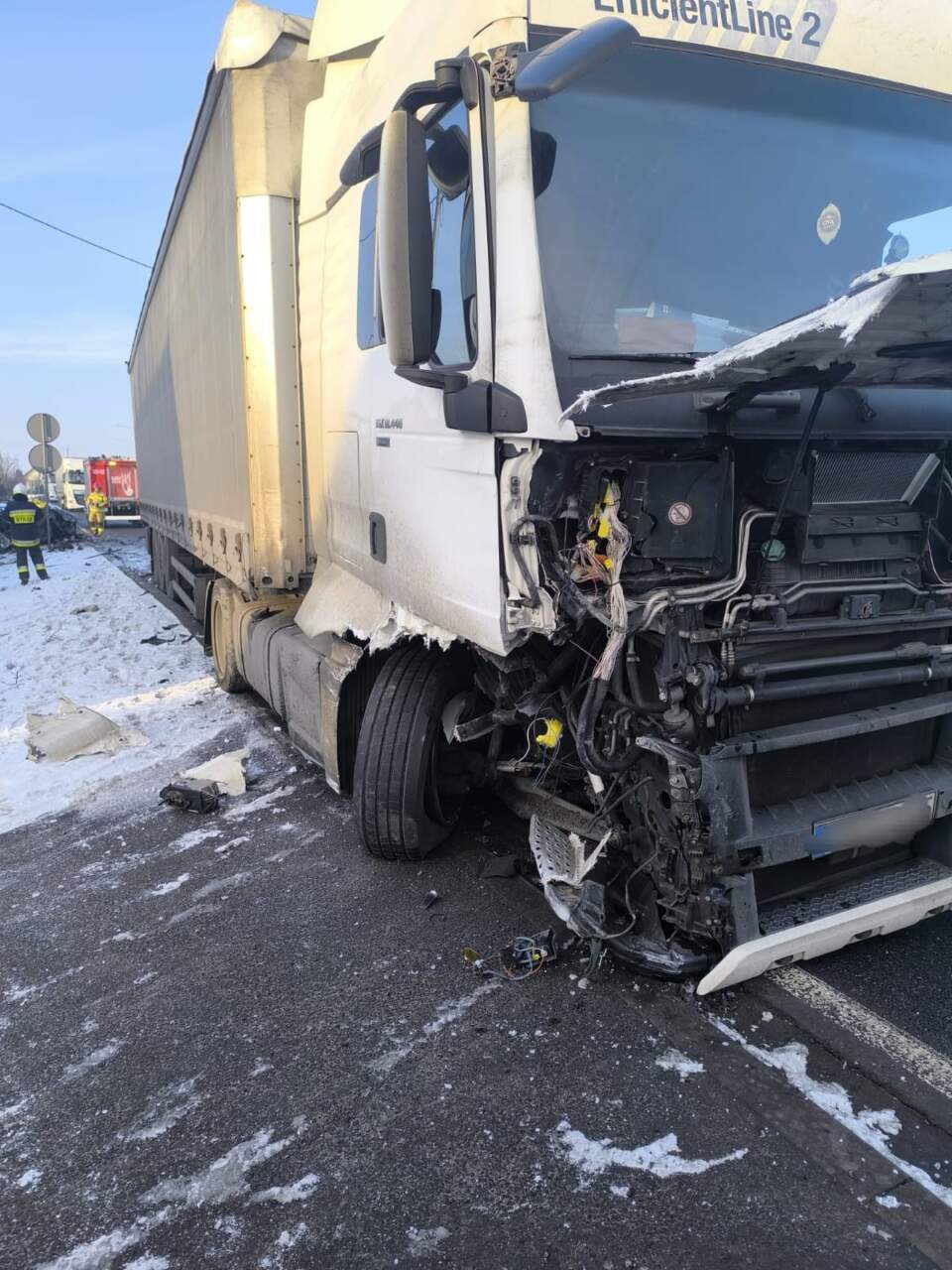 „Kierowca osobówki zjechał na przeciwległy pas i zderzył się czołowo z ciężarówką.”