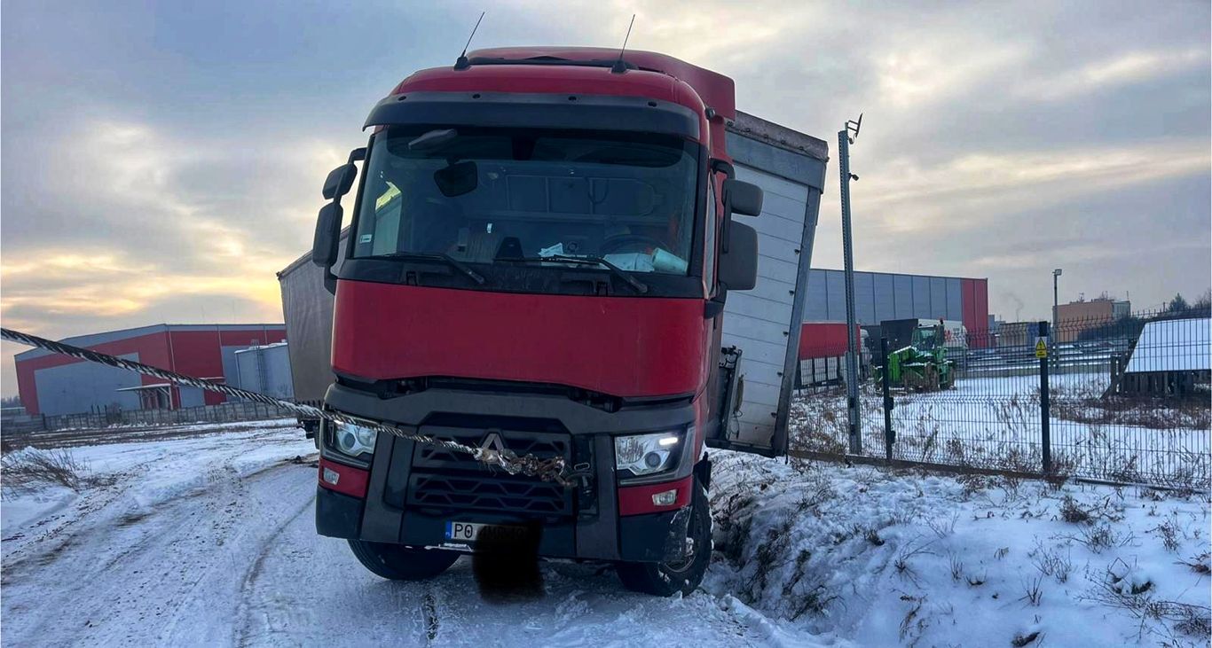 We wtorek, we wczesnych godzinach popołudniowych, w miejscowości Stary Staw doszło do zdarzenia drogowego z udziałem samochodu ciężarowego. Incydent miał miejsce w rejonie firmy K2, gdzie kierowca ciężarówki marki Renault zjechał do przydrożnego rowu.