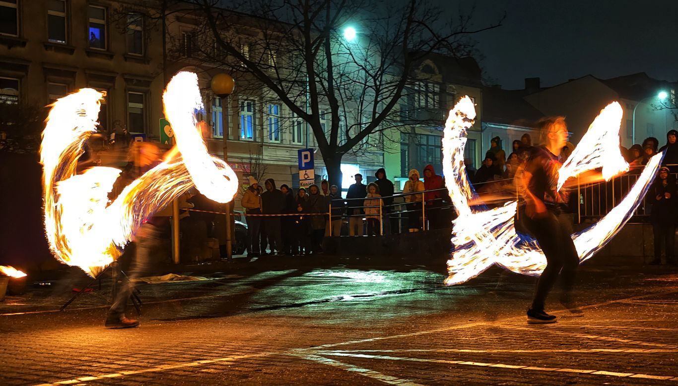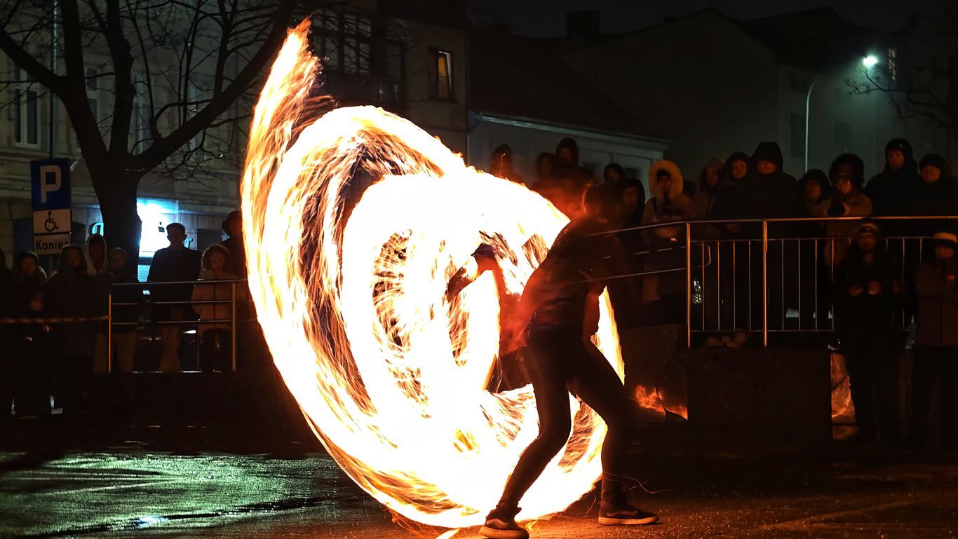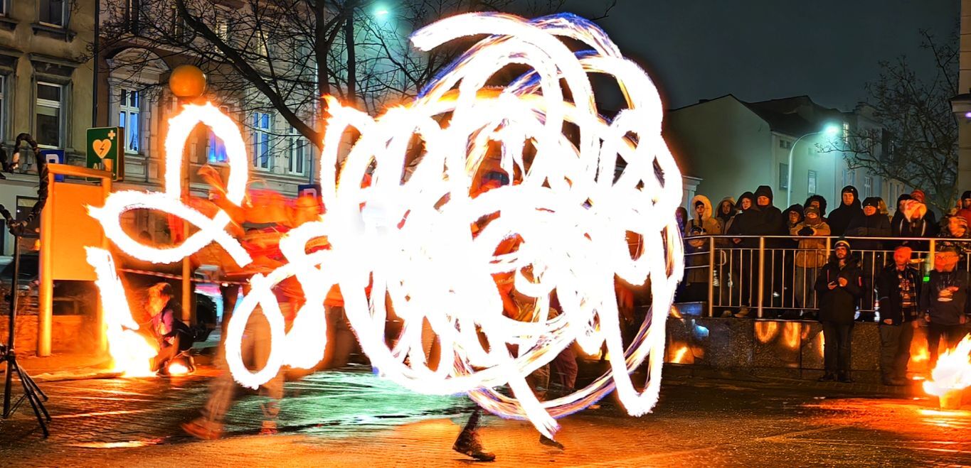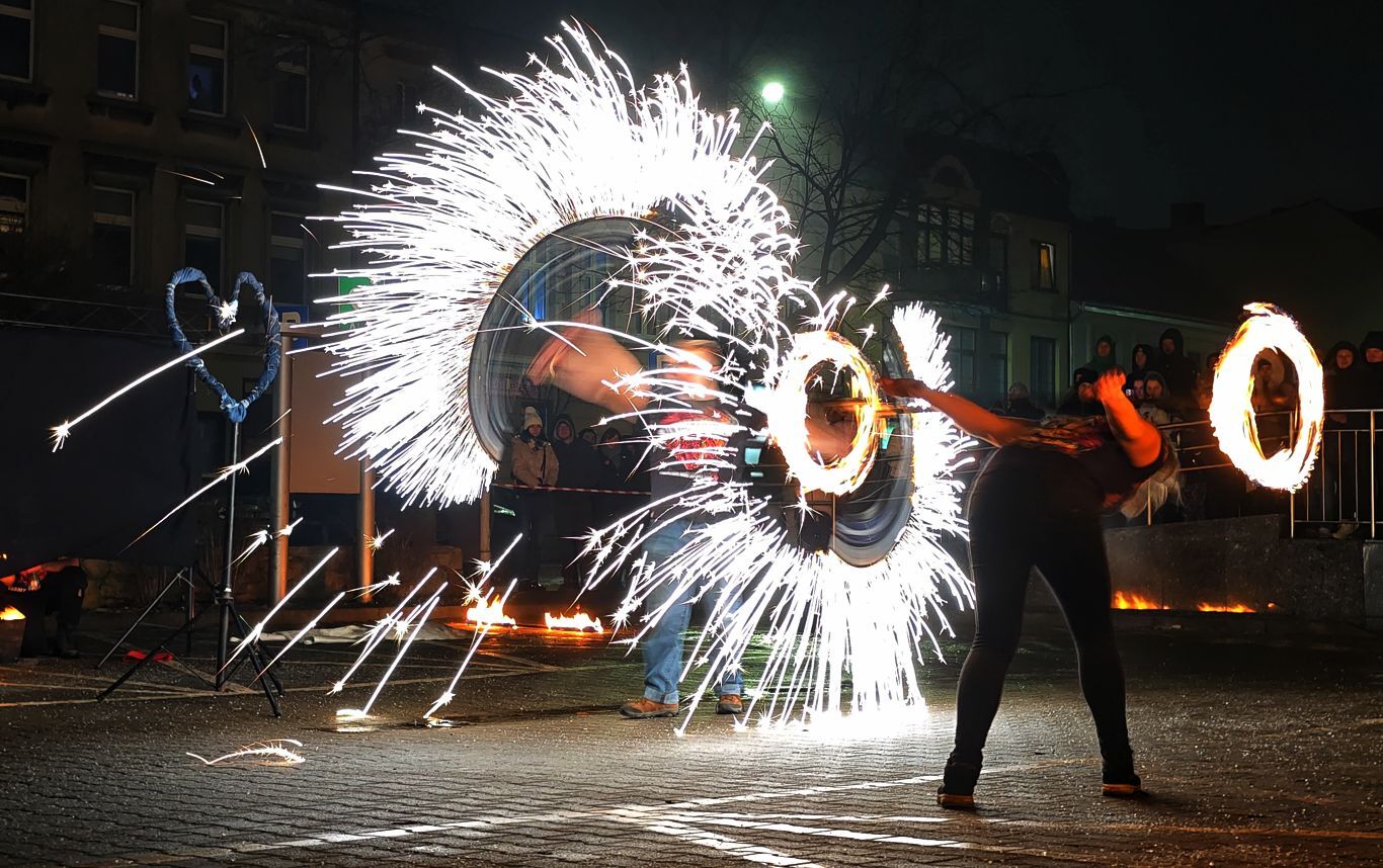 Na ostrowskiej scenie zaprezentował się Teatr ognia Hana Hi, który udowodnił, że ogień – choć nieokiełznany z natury – może stać się narzędziem sztuki. Dynamiczne choreografie, precyzyjne ruchy i gra płomieni stworzyły spektakl pełen emocji, przyciągając uwagę licznie zgromadzonej publiczności. Pokaz był nie tylko efektowny wizualnie, ale także symboliczny, podkreślający siłę wspólnoty i idei WOŚP.