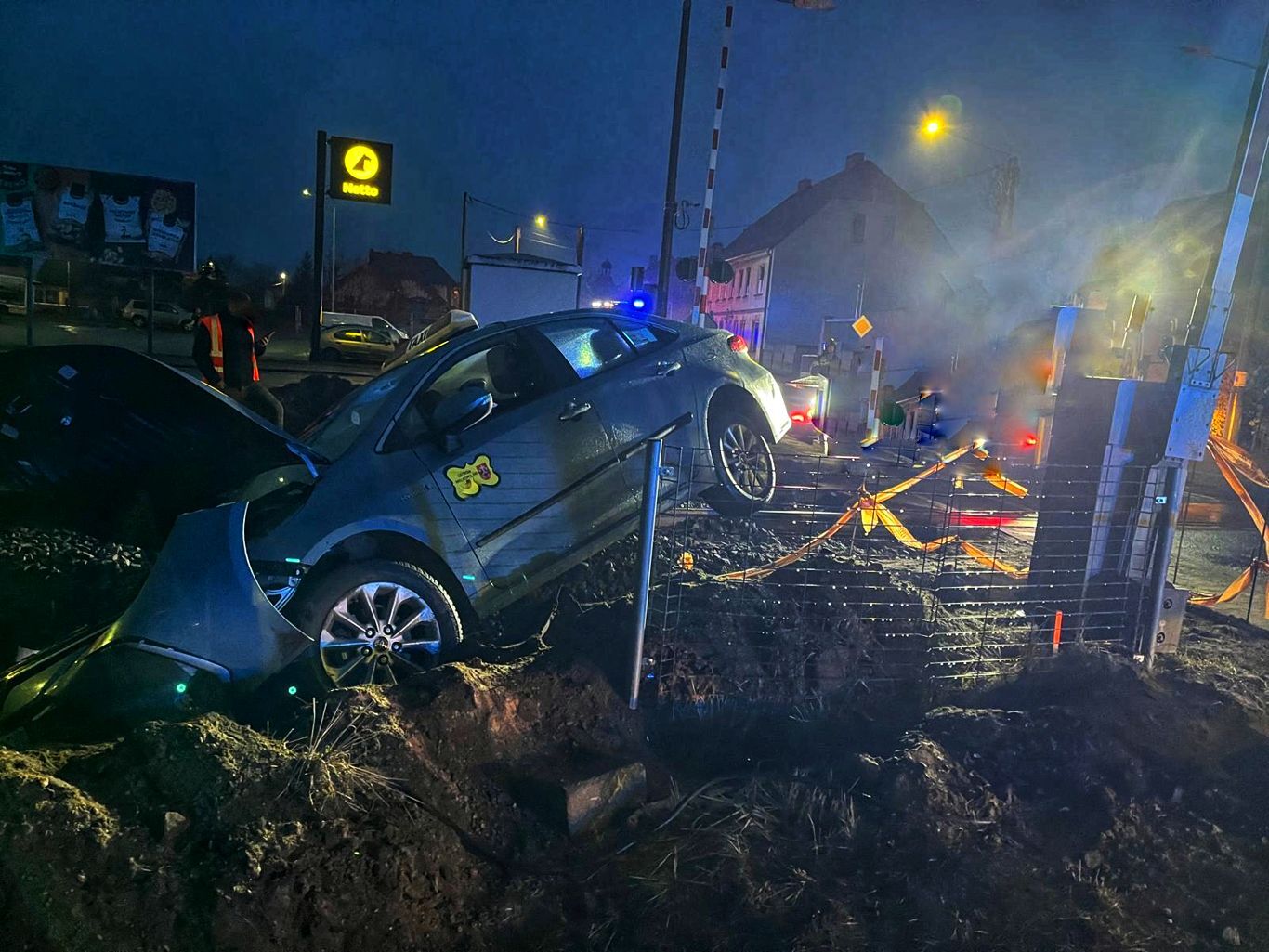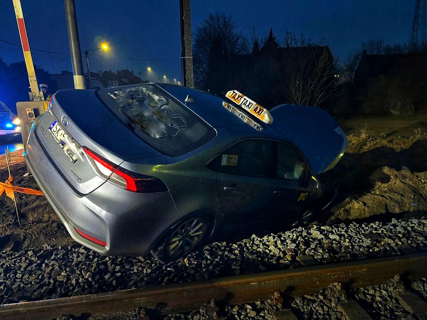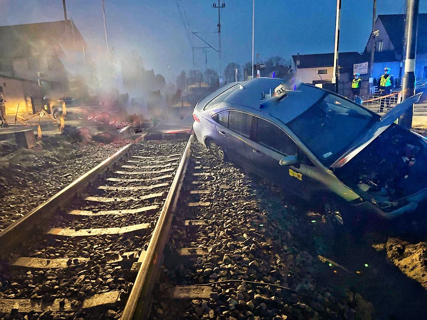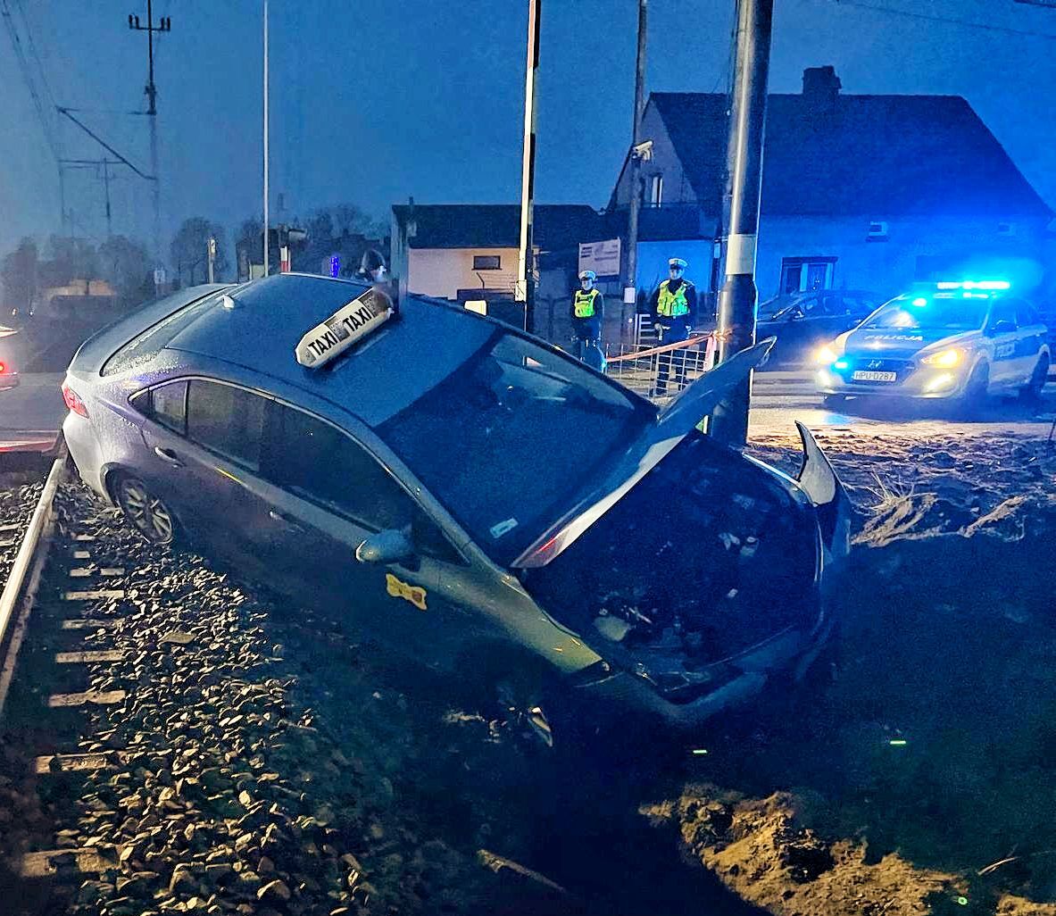 Szczęśliwie pociąg osobowy, który zmierzał na pierwszą stację po pasażerów wyhamował i nie zderzył się taksówką.