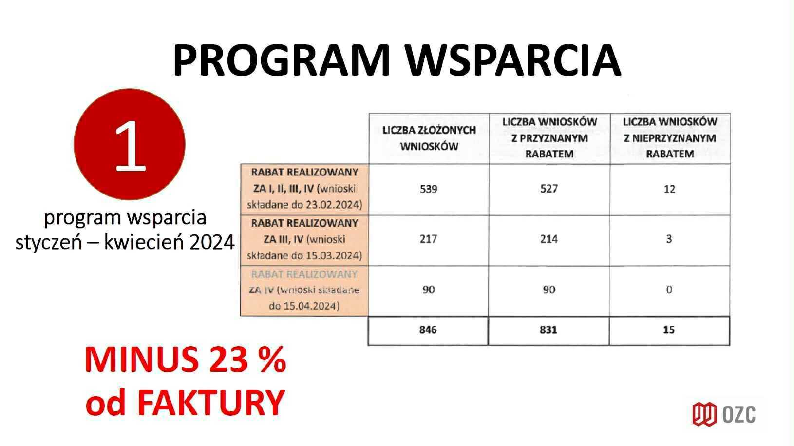 • program wsparcia dla odbiorców ciepła – zrealizowany,