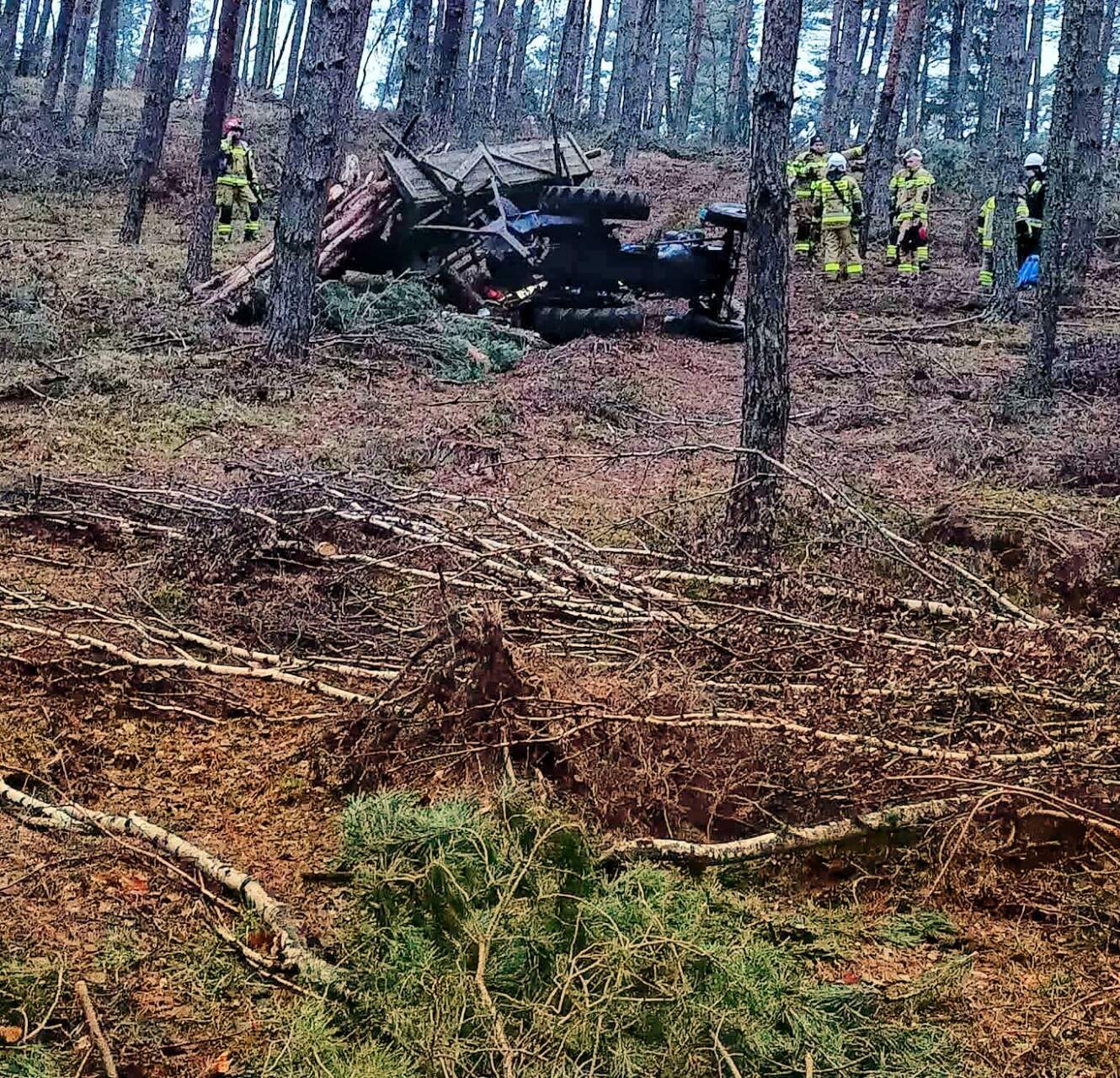 Ze wstępnych ustaleń wynika, że ciągnik rolniczy z przyczepą, poruszający się po nierównym terenie, przewrócił się i przygniótł mężczyznę wykonującego prace w lesie. Na miejsce natychmiast skierowano służby ratunkowe, jednak dotarcie do poszkodowanego było znacznie utrudnione ze względu na lokalizację wypadku – głęboko w lesie, z dala od dróg dojazdowych.