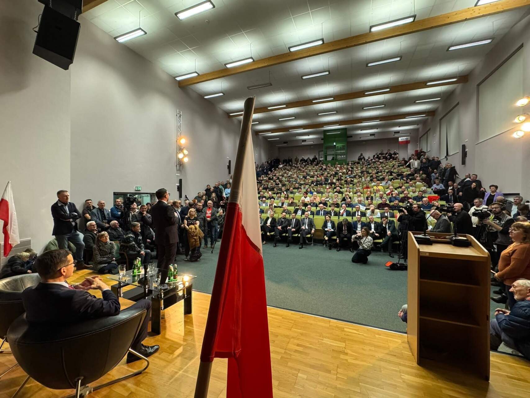 W poniedziałek, 23 lutego, o godz. 17:00 w auli Wydziału Politechnicznego Uniwersytetu Kaliskiego odbyło się otwarte spotkanie z byłym premierem Mateuszem Morawieckim oraz byłym prezesem Orlenu Danielem Obajtkiem. Wydarzenie zgromadziło komplet publiczności i było częścią ogólnopolskiego objazdu byłego szefa rządu. Wystąpienia polityków Prawa i Sprawiedliwości koncentrowały się na krytyce obecnej polityki rządu, kwestiach gospodarczych, zbrojeniowych oraz planach infrastrukturalnych w regionie.