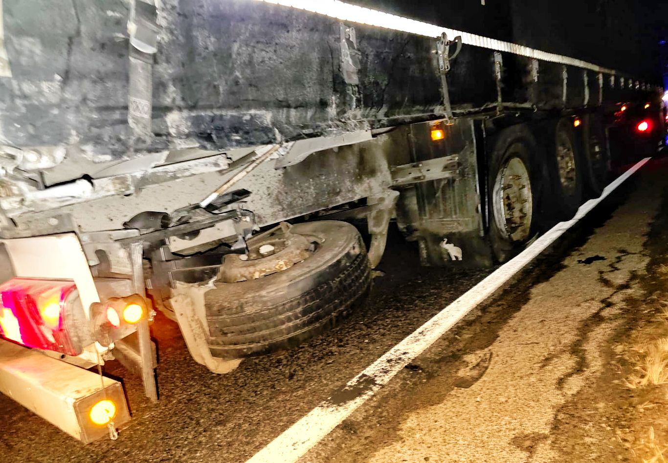 Ze wstępnych ustaleń wynika, że kierowca Peugeota wjechał w bok naczepy samochodu ciężarowego.