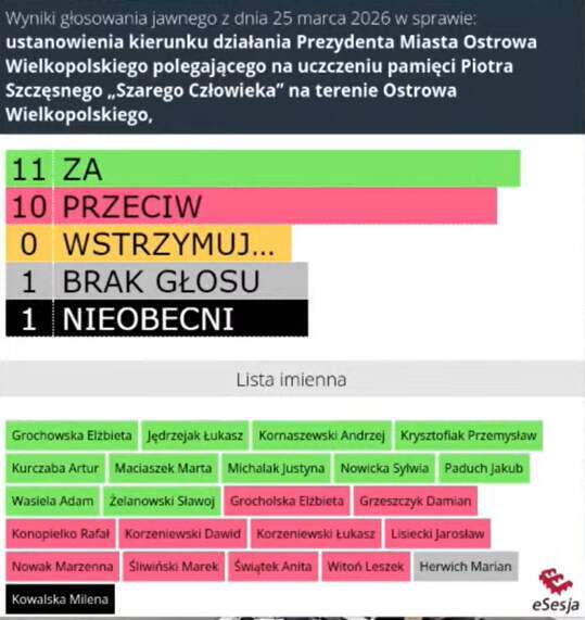 Ostatecznie projekt uchwały został przyjęty minimalną większością głosów. Za jego przyjęciem opowiedzieli się radni związani z Platforma Obywatelska, dwóch radnych z Polska 2050 – w tym Adam Wasiela – oraz radna zmieniająca, niczym damskie torebki, sympatie polityczne Elżbieta Grochowska.