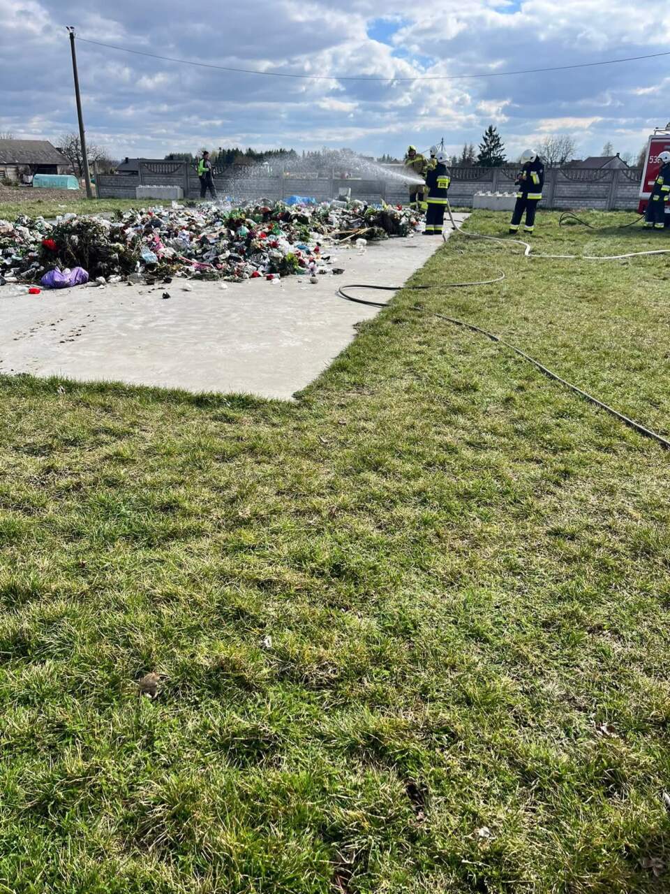 Na miejsce zadysponowano jednostki Ochotniczej Straży Pożarnej z Raszkowa oraz Głogowej. Strażacy zabezpieczyli teren oraz dogasili wysypane odpady, aby wyeliminować ryzyko ponownego zapłonu.