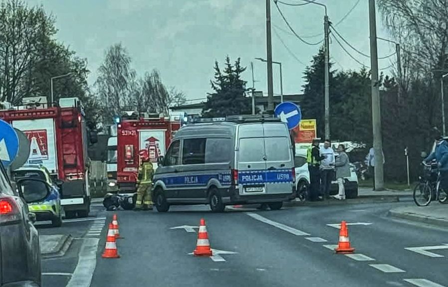 Do poważniejszego zdarzenia doszło po godzinie 13 na ulicy Poznańskiej. W zdarzeniu brał udział motocyklista w wieku 50 lat oraz samochód osobowy marki Hyundai, którym kierował 68-letni mężczyzna. Kierowca samochodu był trzeźwy. Motocyklista doznał obrażeń i został przetransportowany do szpitala przez zespół ratownictwa medycznego. Na miejscu pracowali policjanci, którzy wyjaśniają szczegółowe przyczyny i okoliczności zdarzenia. W rejonie wypadku występowały utrudnienia w ruchu.