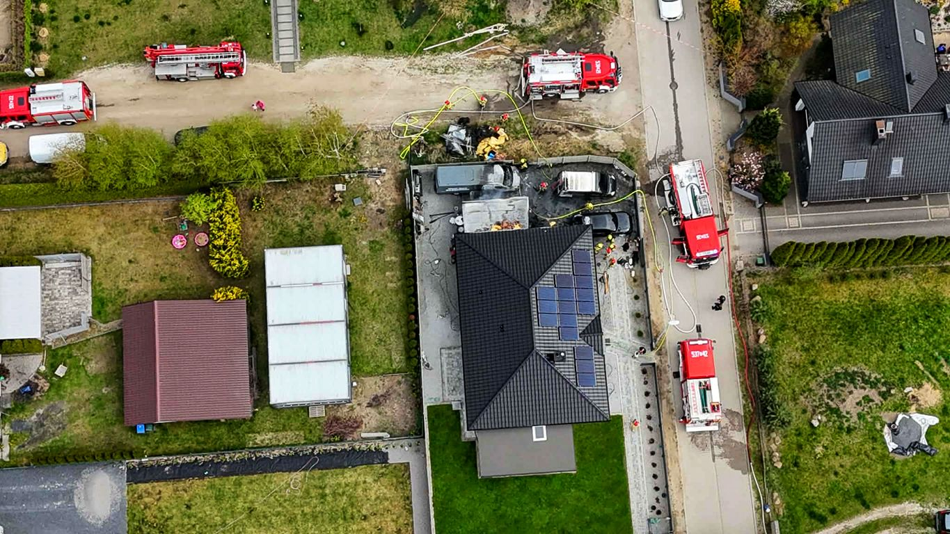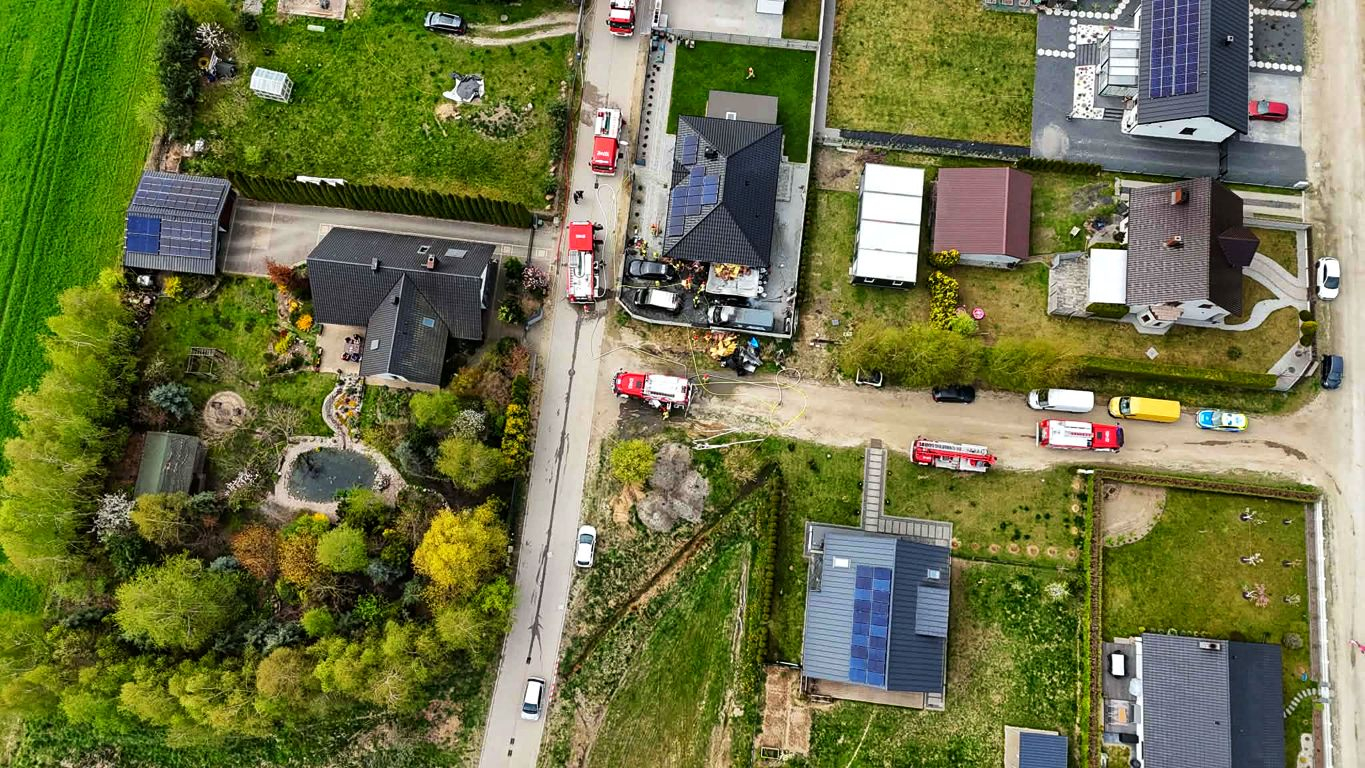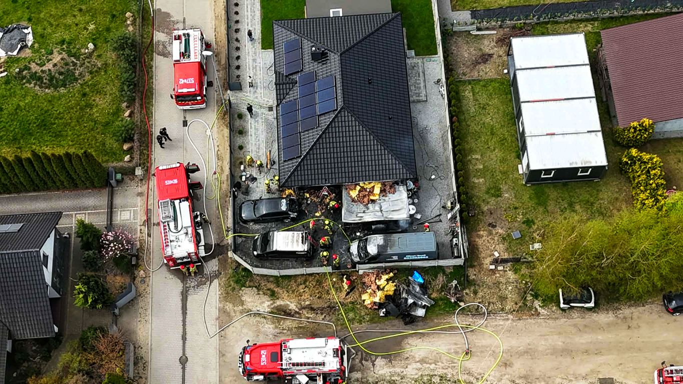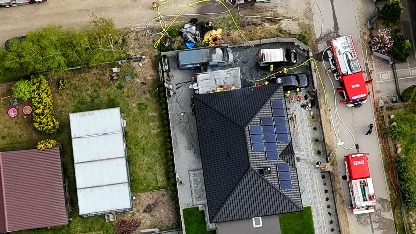 Obecnie sytuacja jest już opanowana. Strażacy prowadzą rozbiórkę spalonych elementów konstrukcji oraz dogaszanie garażu i nadpalonych części elewacji. Na szczęście w zdarzeniu nikt nie został poszkodowany.