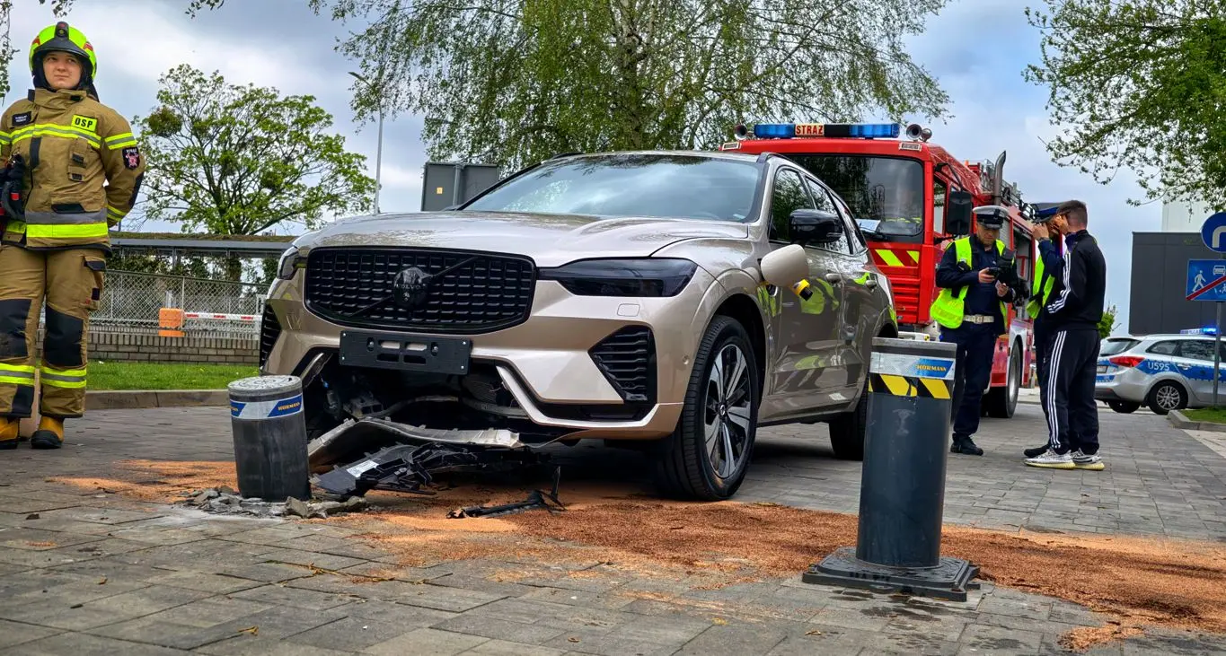 Jak wynika ze wstępnych informacji, 30-letni kierowca samochodu marki Volvo XC60 wjeżdżał od strony ulicy Wojska Polskiego. W trakcie wjazdu nie zauważył podnoszącego się słupka zabezpieczającego wjazd na teren placówki. W efekcie doszło do uderzenia przodem pojazdu w metalowy element infrastruktury.