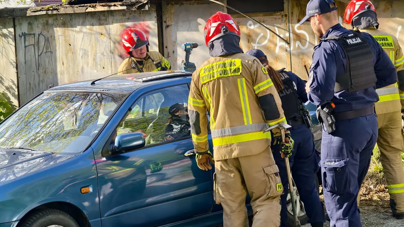Podjęto decyzję o wybiciu jednej z szyb w pojeździe. Po potwierdzeniu, że mężczyzna znajduje się w bagażniku użyto sprzętu hydraulicznego do jego otwarcia.