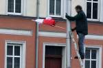 Poprzednia technika polegała na tym, że pracownik jadący na przyczepie, jedną ręką trzymał się niej, a drugą zdejmował flagi. Cały czas ryzykował upadek z wysokości. Tym razem było nie lepiej. Rozstawiał drabinę przy ruchliwej drodze i jedną ręką trzymając się latarni, drugą zdejmował kij z flagą, który znajdował się z drugiej strony i znacznie powyżej ręki. Jak bardzo jest to niewygodne i niebezpieczne, chyba nikogo nie musimy przekonywać. Może za rok doczekamy się zastosowania podnośnika koszowego tak jak zdrowy rozsądek nakazuje albo wywieśmy tylko flagi na instytucjach publicznych nie ryzykując zdrowia i życia biednych pracowników, którzy nie chcąc stracić pracy, muszą wykonywać absurdalne polecenia przełożonych z miejskiej spółki.