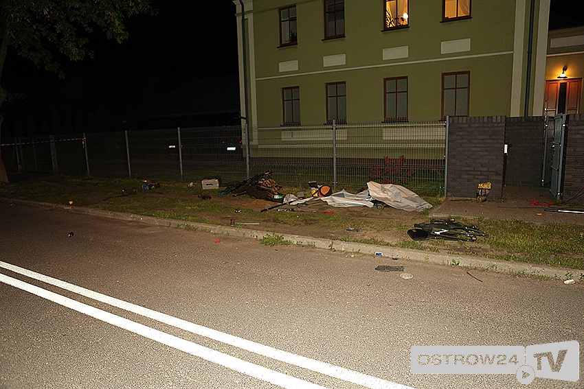 Tuż przed północą rozległ się huk, który pobudził okolicznych mieszkańców. To skutek wypadku po którym dwie osobówki wjechały na teren jednej z posesji. Opel Corsa wylądował na boku. Audi A4 stało normalnie na kołach. Opel Corsa w chwili wypadku miał transportować łódkę na przyczepce. W wypadku kilka osób odniosło obrażenia.