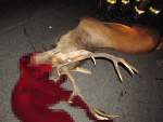 Duży jeleń, który w nocy ze środy na czwartek postanowił przespacerować przez drogę krajową nr 11 – odcinek Przygodzice-Antonin, został potrącony przez kilka aut. Najpierw uderzył w niego Mercedes, a następnie zwierzyna wpadła m.in. pod Forda Focusa. Jedna osoba została poszkodowana, jeleń zginął na miejscu.