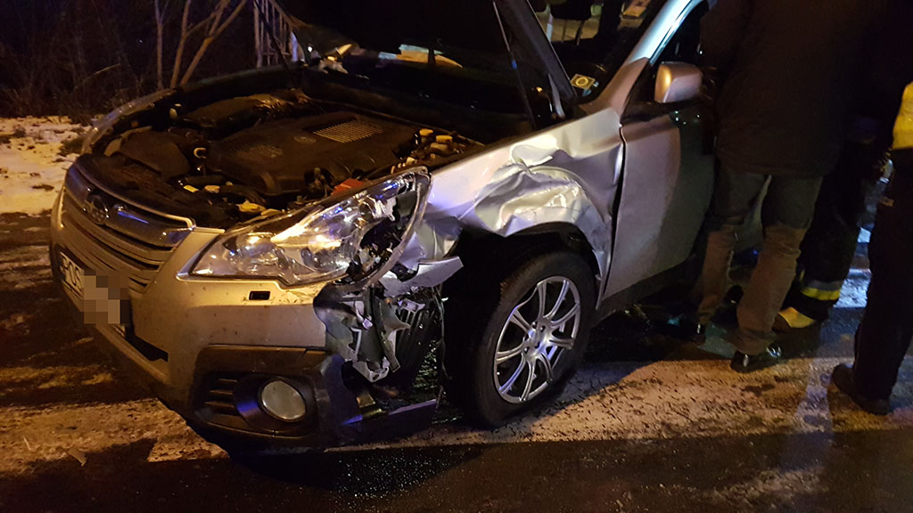 Ze wstępnych ustaleń wynika, że mężczyzna kierujący Fordem Focusem chciał skręcić w lewo do jednej z firm. Jadący z przeciwka kierowca Skody Octavii uderzył w prawy bok Forda. Octavia obróciła się i uderzyła swoim lewym narożnikiem w Subaru, którym podróżowała kobieta. I to właśnie ona, uskarżając się na bóle w odcinku szyjnym kręgosłupa, została zabrana do szpitala