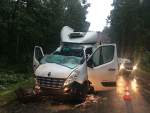 O godzinie 6:30 na trasie Grabów nad Prosną – Kalisz, koło miejscowości Wielowieś (powiat ostrowski). Na jadące Renault Master przewróciło się drzewo i uderzyło w jego kabinę. Samochodem przewożone było mięso drobiowe. Pojazd zarejestrowany jest w powiecie zgierskim.
