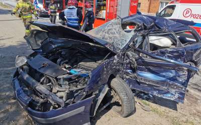 Potężne uderzenie ciężarówki w osobówkę