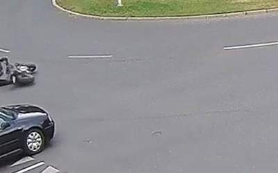 Volkswagenem zajechał drogę motocykliście na Rondzie Bankowym (wideo)