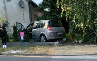 Renault uderzył w Mercedesa i staranował ogrodzenie